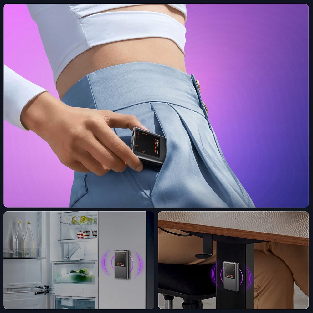 ✅Использование магнитов в любом месте. Диктофон оснащен сильными магнитами, поэтому его можно легко прикрепить к столам, поручням, холодильникам, автомобильным сиденьям или другим металлическим поверхностям.