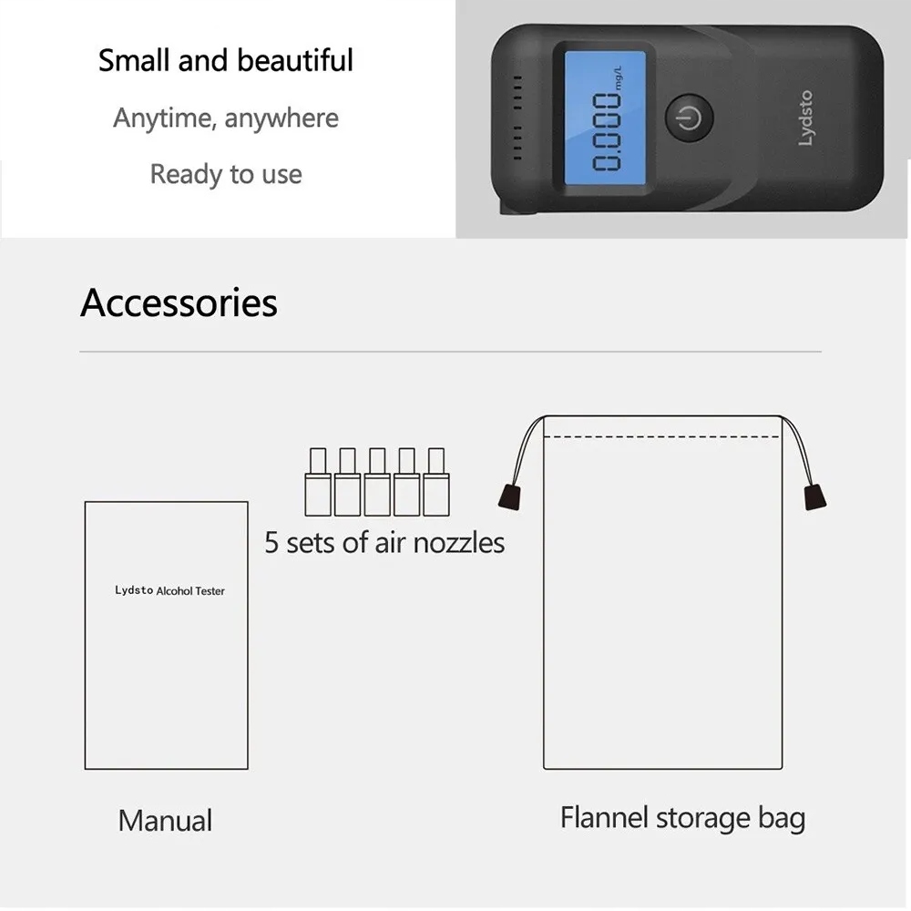 Цифровой тестер алкоголя Lydsto Профессиональный HD-детектор алкоголя с цифровым дисплеем Высокочувствительный датчик Полицейский алкотестер Алкотестер