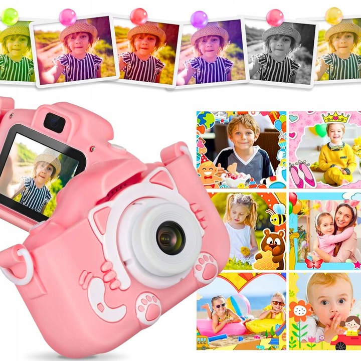 ЦИФРОВИЙ ДИТЯЧИЙ ФОТОКАМЕРА Дитяча фотографія РОЖЕВЕ КОШЕНЯ + КАРТА 4 ГБ