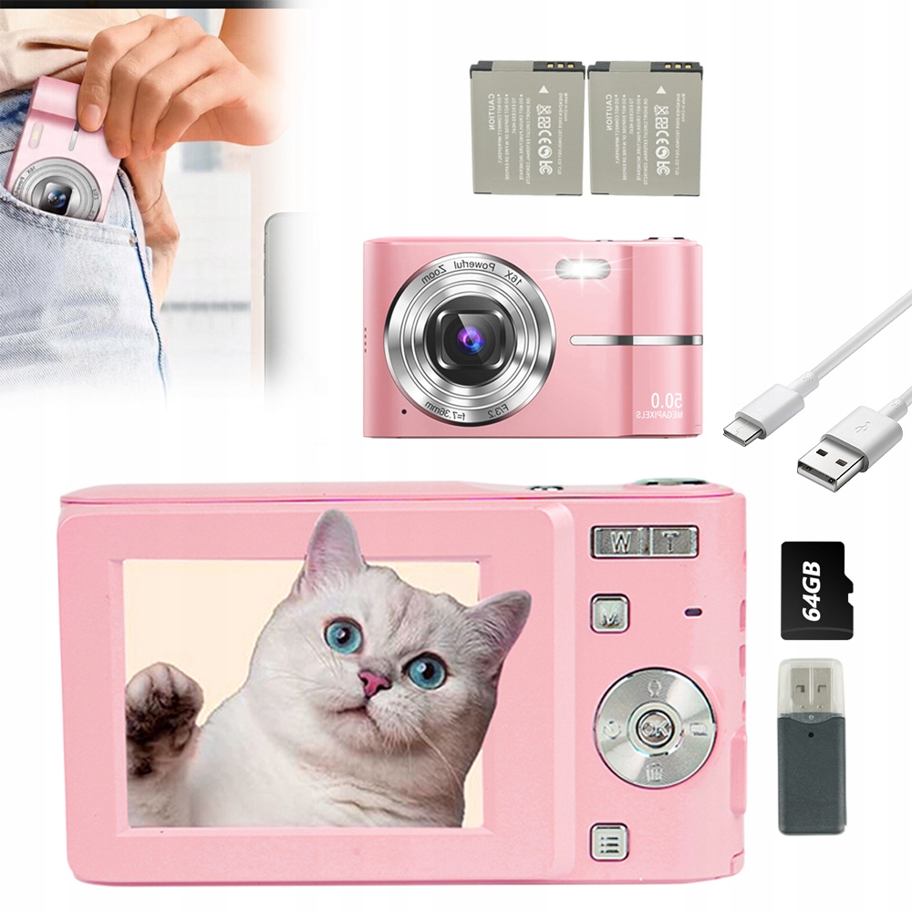 Цифровий фотоапарат 4K 48 Мп з 2,7-дюймовим екраном, рожевий
