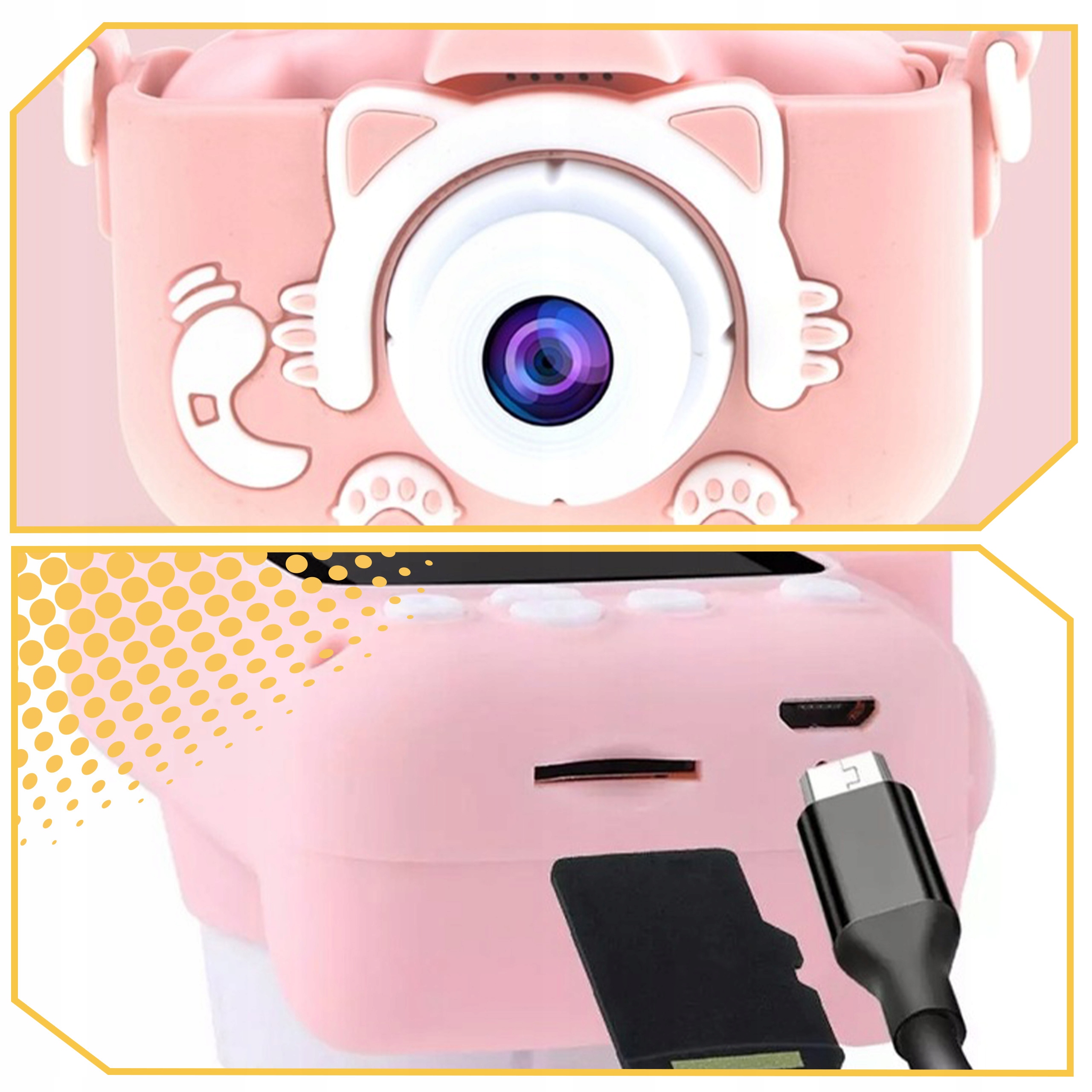 Цифровая камера для детей фото розовый котенок + 32 ГБ карта