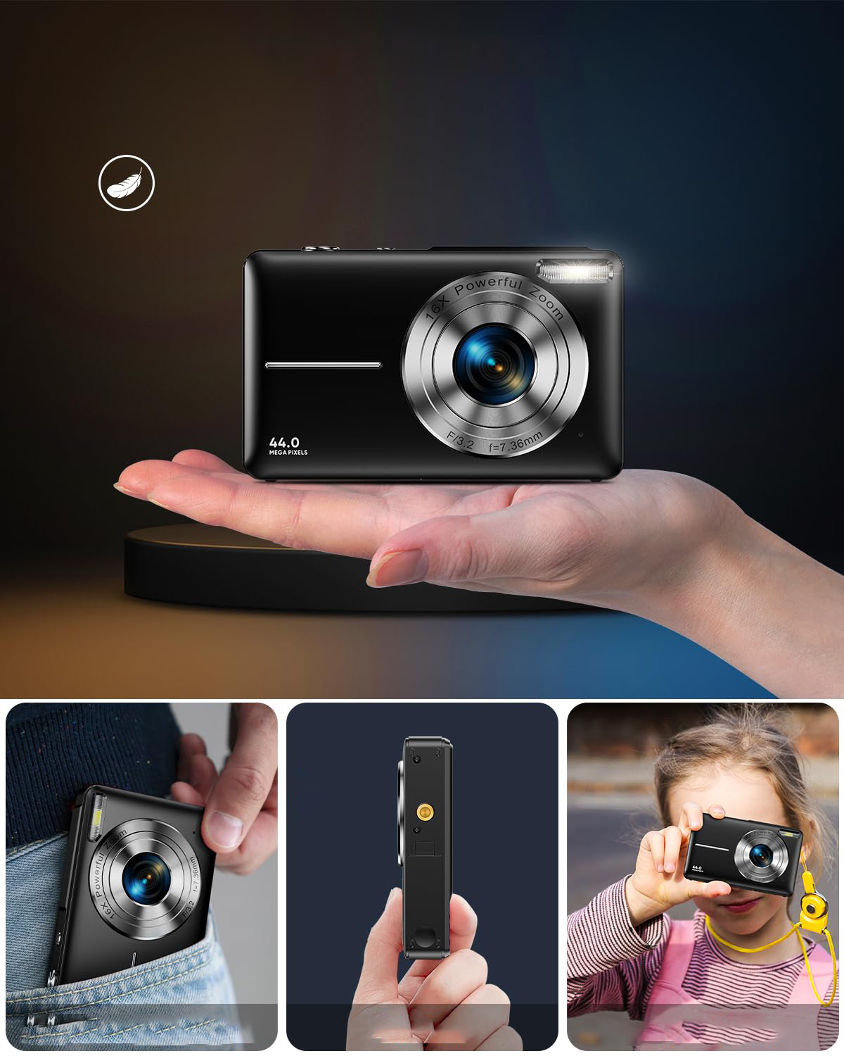 - Эта цифровая камера обеспечивает разрешение изображения HD 1080P и разрешение видео 44 МП со встроенным микрофоном и динамиками, что поможет вам делать фотографии или видео высокой четкости, запечатлевать прекрасные и незабываемые моменты.