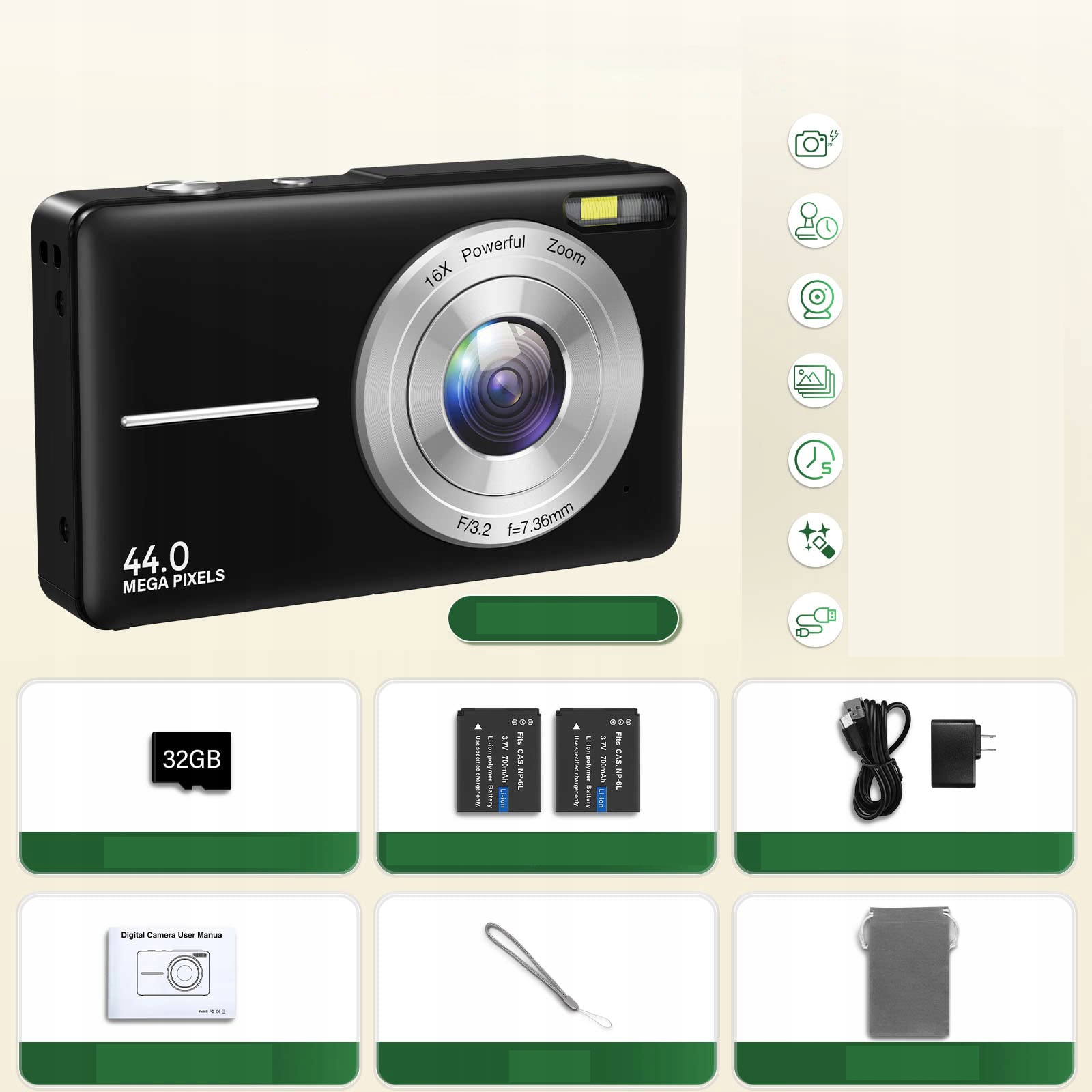 ЦИФРОВАЯ КАМЕРА ДЕТСКАЯ HD 1080P 44 МП + КАРТА 32 ГБ