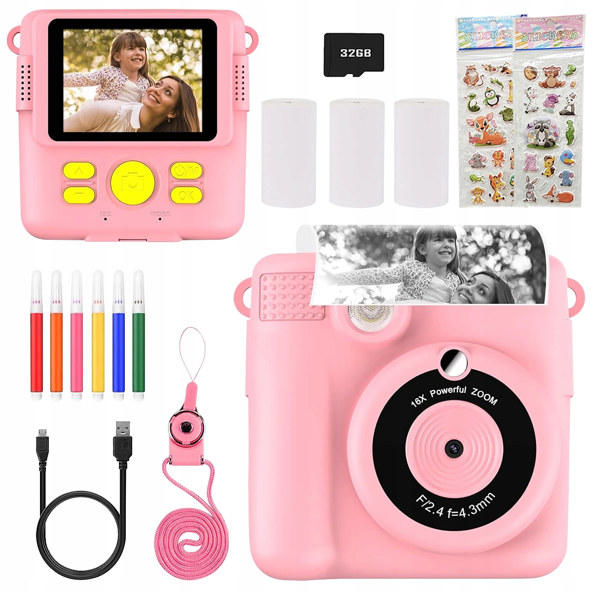 ЦИФРОВАЯ ДЕТСКАЯ КАМЕРА С ТЕРМОПРИНТЕРОМ 6 НАКОНЕЧНИКОВ ПРИНТЕР 32 ГБ