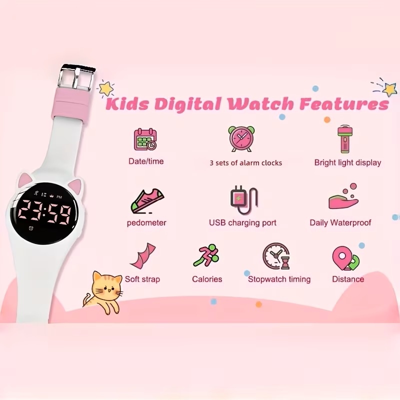 ЦИФРОВЫЕ ЧАСЫ КОШАЧЬИ УШИ ЭЛЕКТРОННЫЕ ЧАСЫ ДЛЯ ДЕВОЧКИ