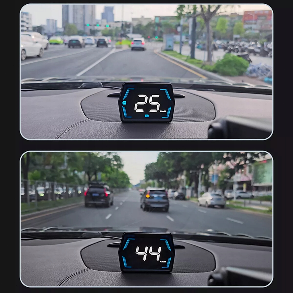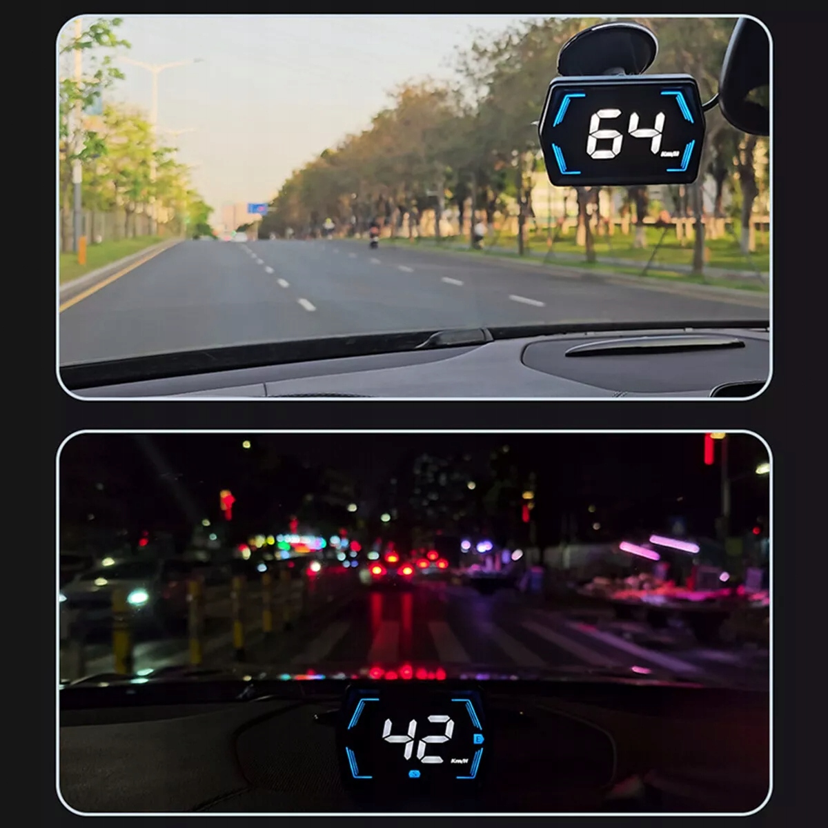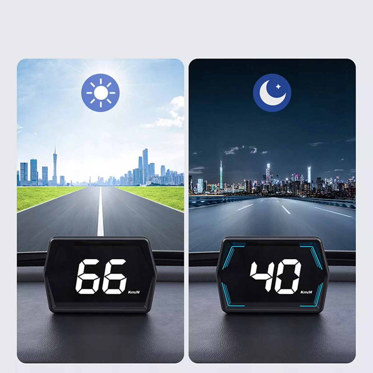 Этот автомобильный дисплей HUD Head-Up имеет встроенный датчик света, который обнаруживает яркость внешней среды. Автоматически настраивает яркость дисплея, обеспечивая оптимальную видимость в различных условиях освещения.