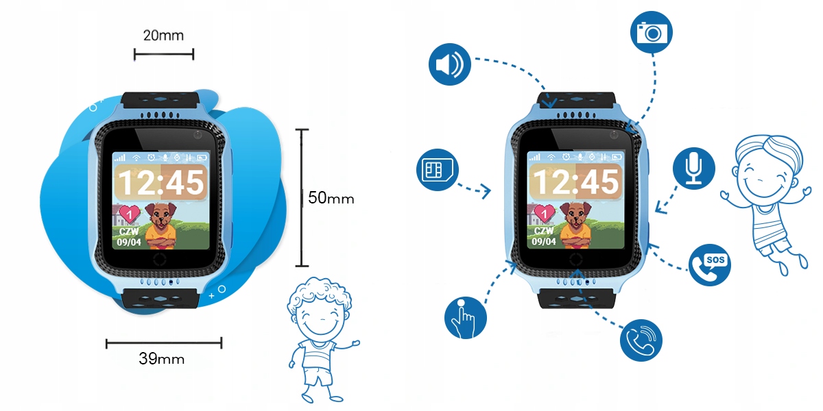 - Ребенок может сфотографировать ваши часы и сразу же отправить их вам. Камера расположена по центру, а не на боковой стене. Это облегчает фотографирование – особенно так называемую селфи, которые дети чаще всего отправляют родителям.
