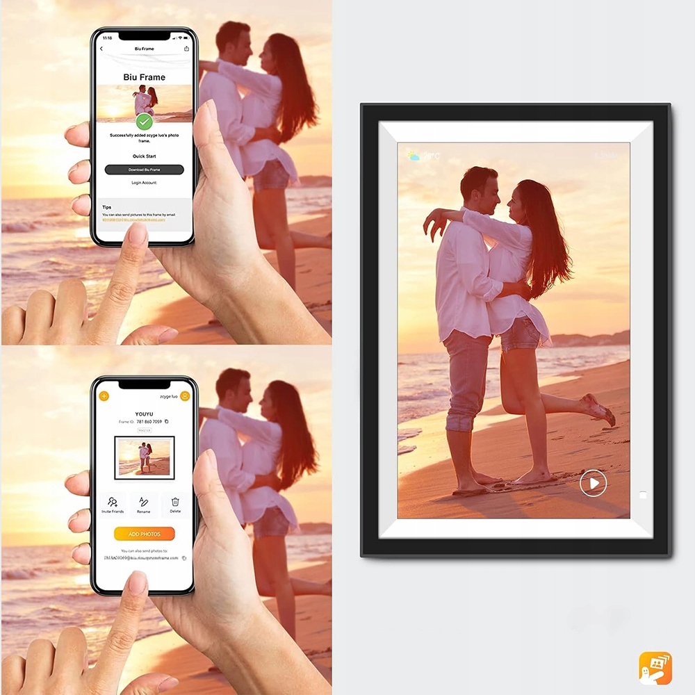 ✔ Очень простая операция , просто загрузите приложение Frameo на вашем смартфоне и подключитесь к цифровой раме для фотографий WiFi.
