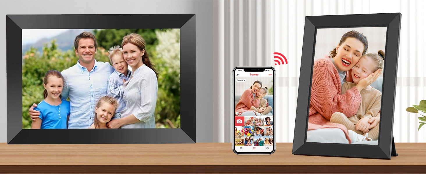 - � � очень прост в использовании, загрузите приложение Frameo на вашем смартфоне и подключитесь к цифровой фотообразованию через Wi-Fi.