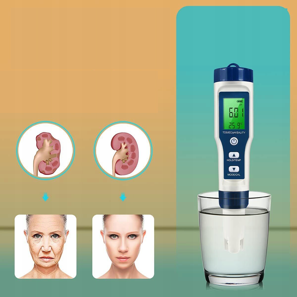 Цифровой счетчик PH 5 в 1 -х водяном тестере с выделением TDS/EC/SALINITY/TEMP