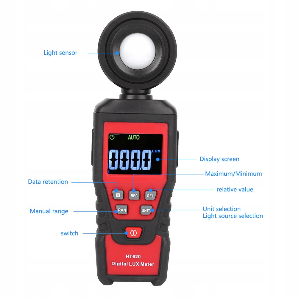 - Диапазон измерения: 0 ~ 200 000 люкс (0 ~ 20 000 FC).