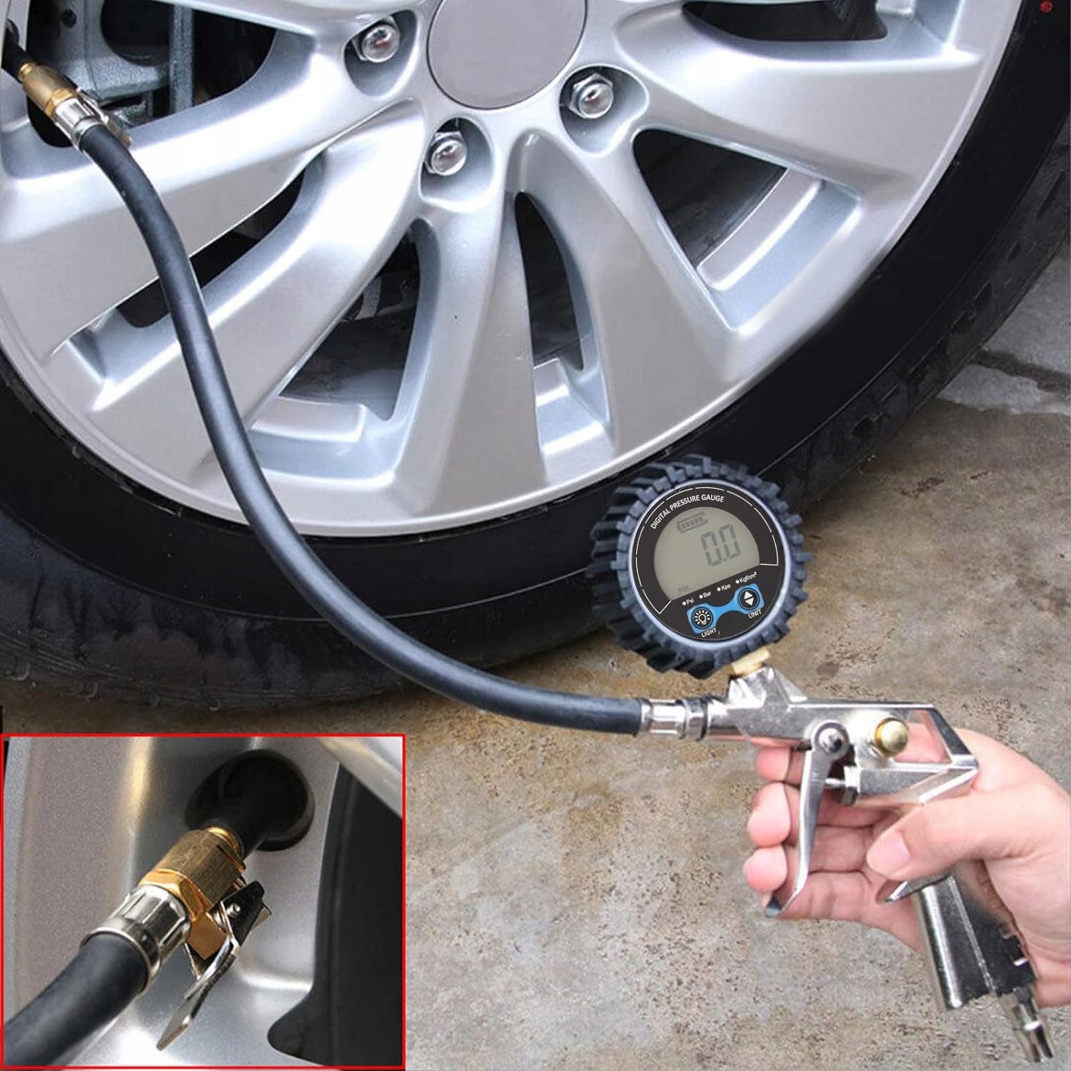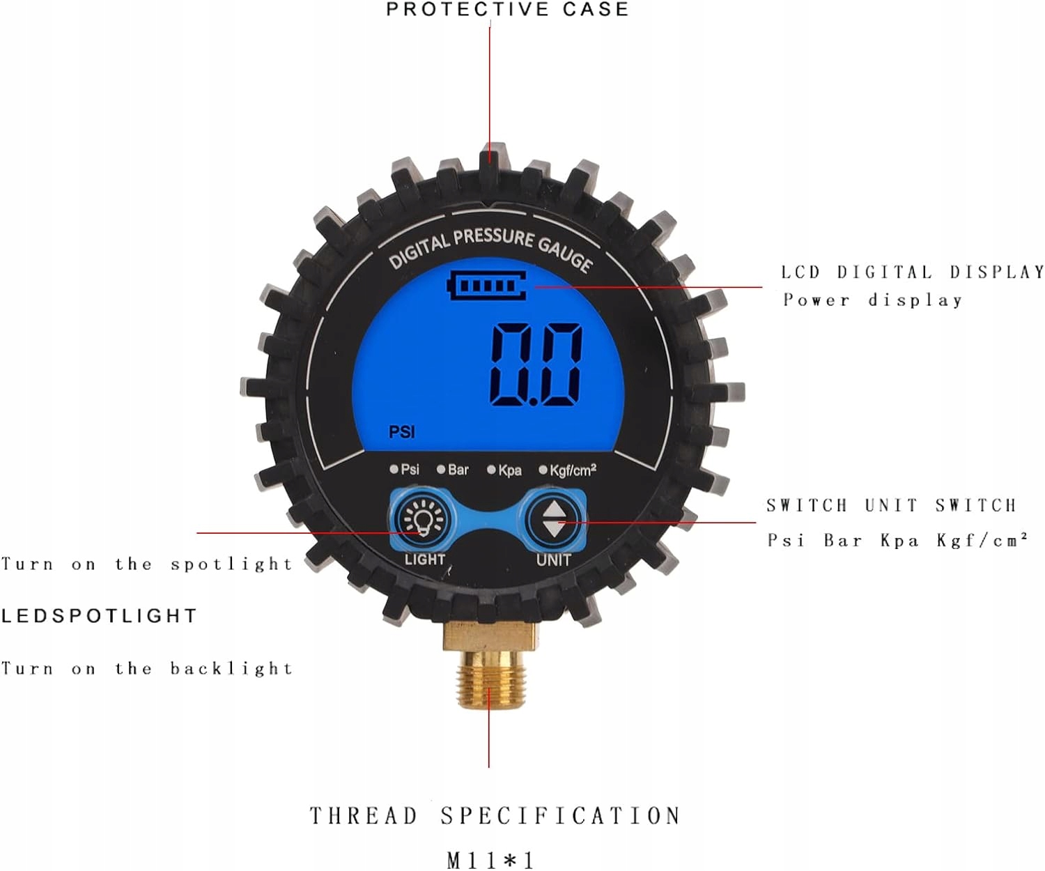 Материал и применение из меди, высокая производительность при любых погодных условиях и подходит для легковых автомобилей, грузовиков, мотоциклов, внедорожников, кемперов и других. Практичные в использовании, правильно накачанные шины обеспечивают лучшую производительность, снижая вероятность проколов и аварий, увеличивая расход топлива и экономя топливо. Идеально настроенная спецификация резьбы - M11x1 с большим ЖК-дисплеем для удобного чтения с синей подсветкой, что более удобно. Четыре сменных блока. Накачиватель шин с манометром может свободно переключаться между четырьмя блоками, которые измеряются в фунтах на квадратный дюйм, кПа-барах и кгсм2. Высокая точность Цифровой насос для накачивания шин всегда дает точные показания давления в шинах с точностью до 1 к 01, разрешение дисплея в диапазоне от 3200 фунтов на квадратный дюйм.