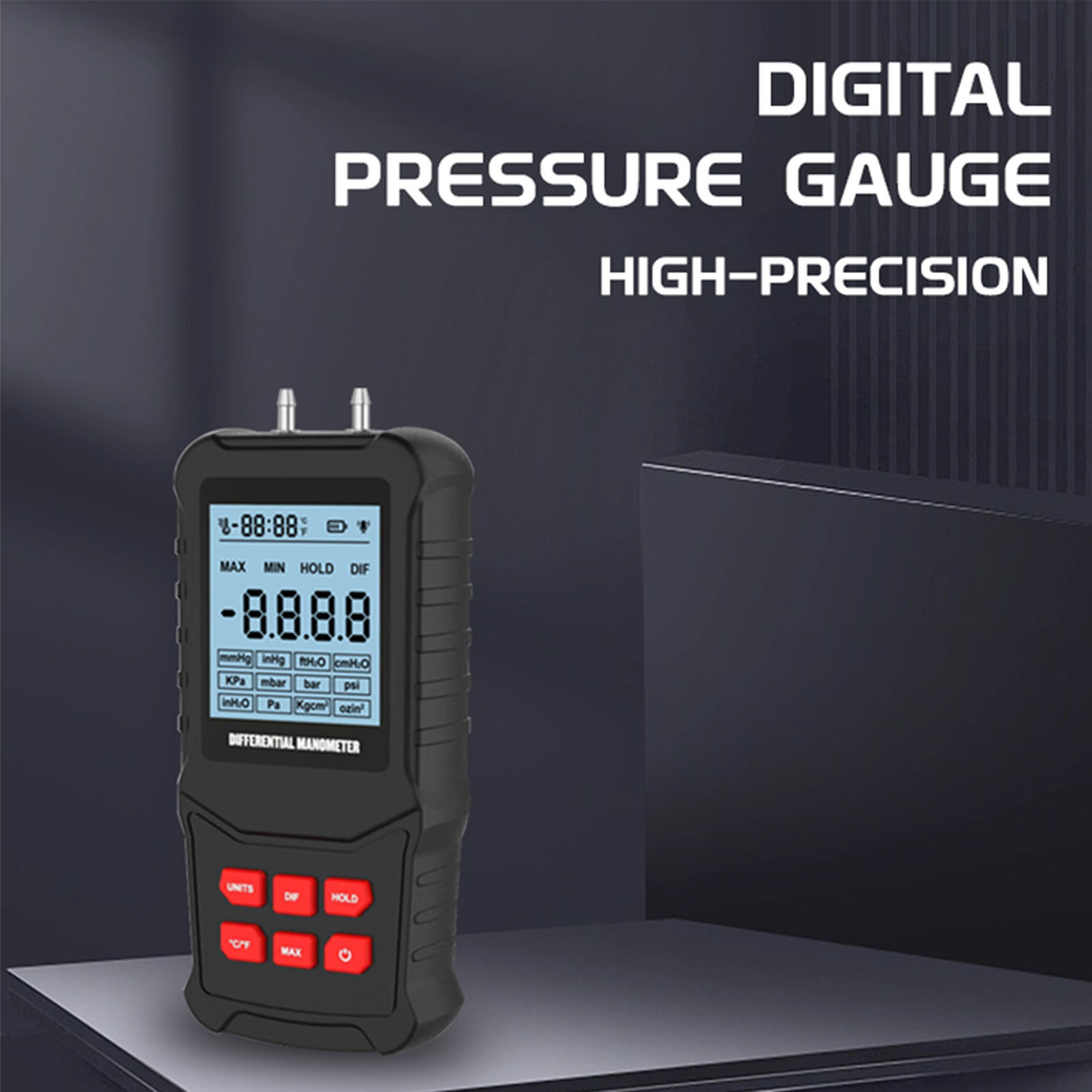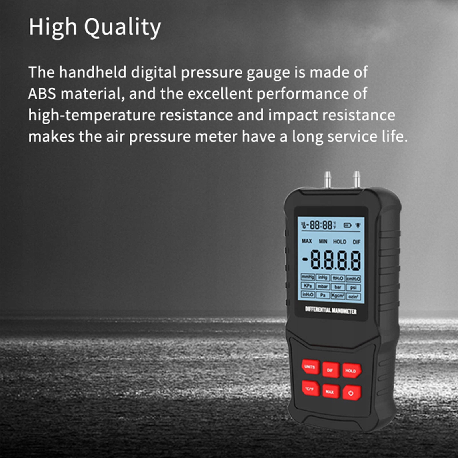 3. 12 Спасаемые единицы и широкие приложения: 12 отдельных единиц, MMHG, INHG, FTH O, CMH O, INH O, PA, KPA, MBAR, BAR, PSI, KGCM ² и Ozin ². Два шланга в наборе для тестирования давления газа составляют 24 см долговечности; Размер металлической нити составляет 1/8 дюйма. Он включает в себя под давления, такие как Record и Imperial.