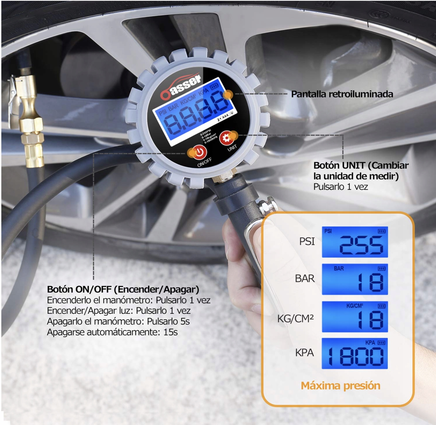 Цифровий манометр шин Oasser P5 з дисплеєм + підказки