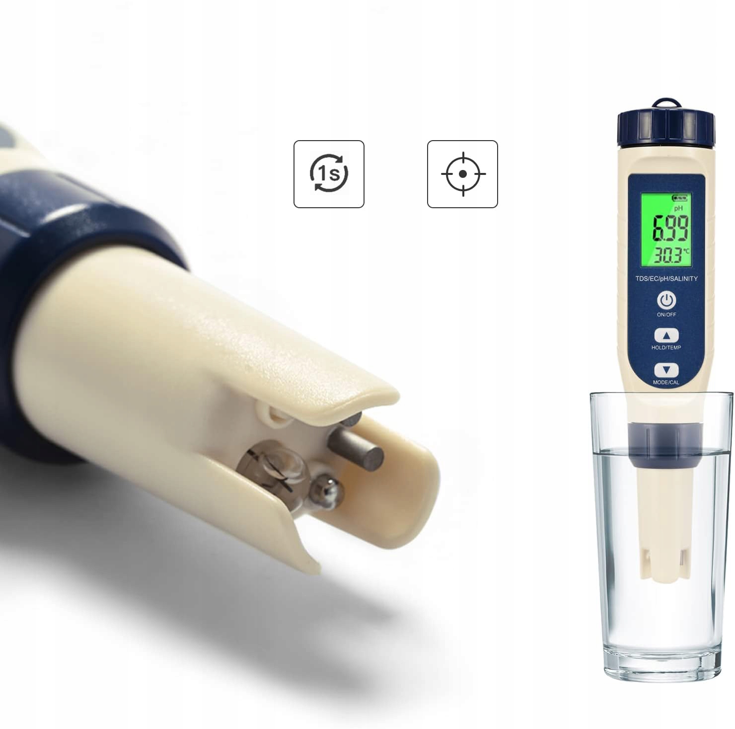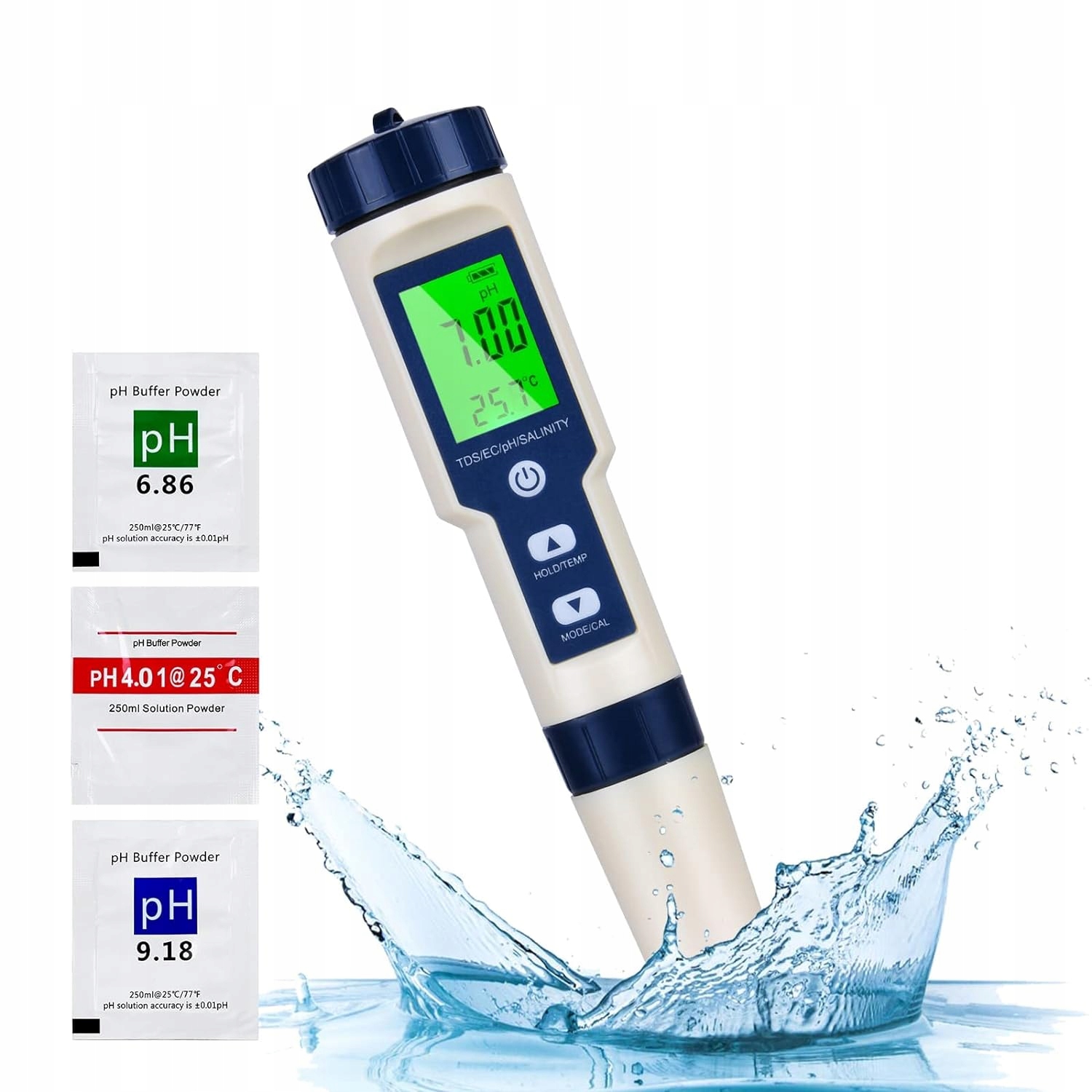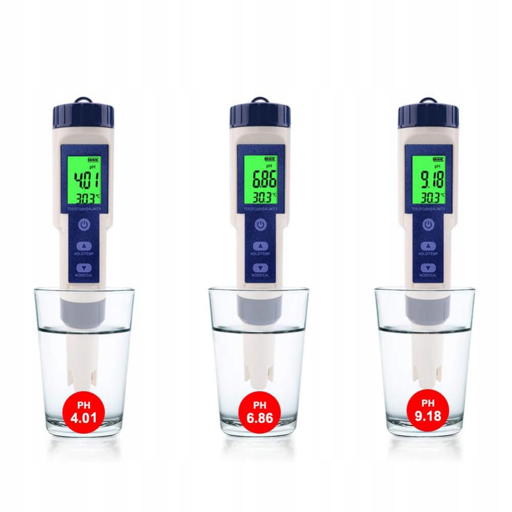 ressive 【Широкое приложение】 - этот многофункциональный тестер PH 5 в 1 идеально подходит для применения PH домашних и лабораторных испытаний, которые можно использовать для проверки качества питьевой воды, бассейнов, аквариумов, горячих источников, аквакультуры, прудов и воды в помещениях для обеспечения безопасности вод в повседневной жизни.