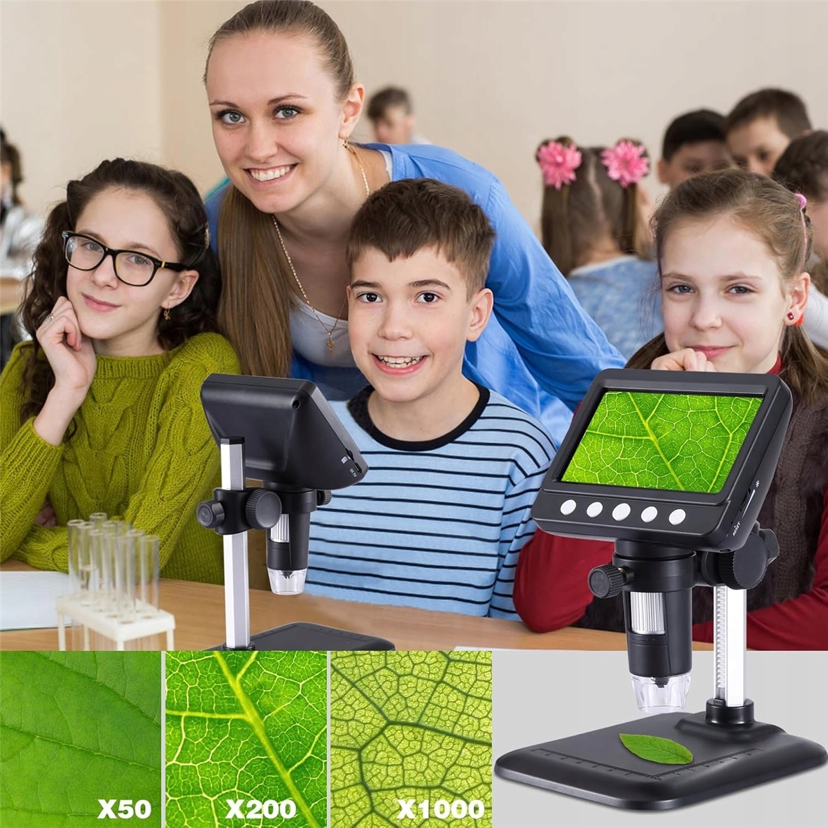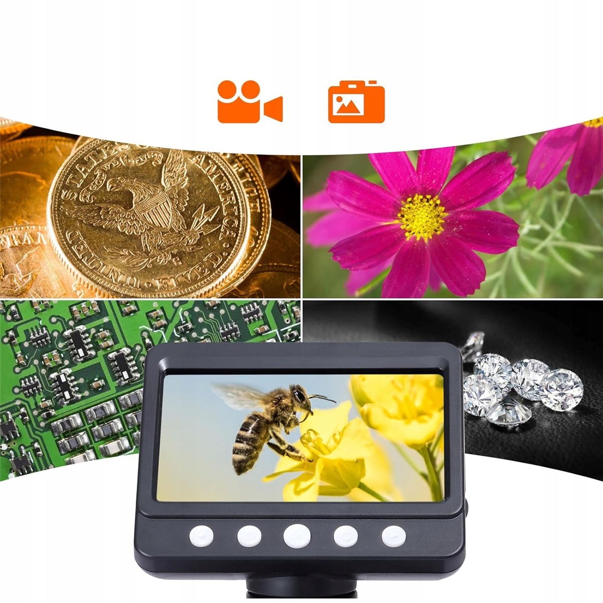 🐞🐞 4,3-дюймовый экран высокого разрешения: Этот цифровой микроскоп оснащен 4,3-дюймовым ЖК-дисплеем высокого разрешения, обеспечивающим широкое поле зрения и плавное увеличение от 1x до 1000x для удобства наблюдения. Работающий от литий-ионного аккумулятора, он позволяет вам исследовать микроскопический мир где угодно, обеспечивая настоящую портативность и автономность.