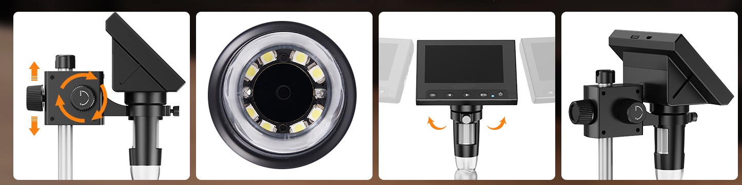 Цифровой микроскоп 1000x с 4,3 -дюймовым экраном и 8 светодиодами
