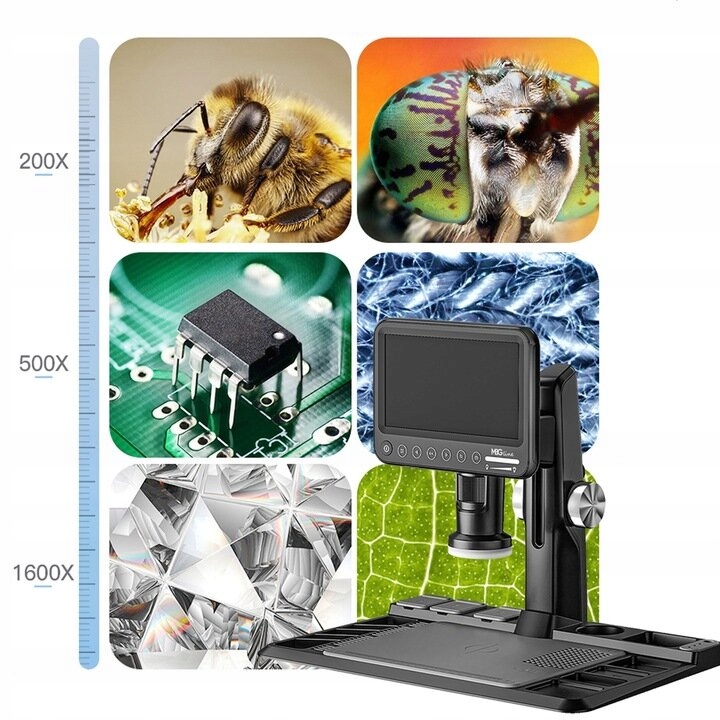 ✅ Профессиональный цифровой микроскоп с расширением 1600x с 7 "IPS HD -экраном светодиодного светодиодного светодиода и записи видео и съемки. H2>