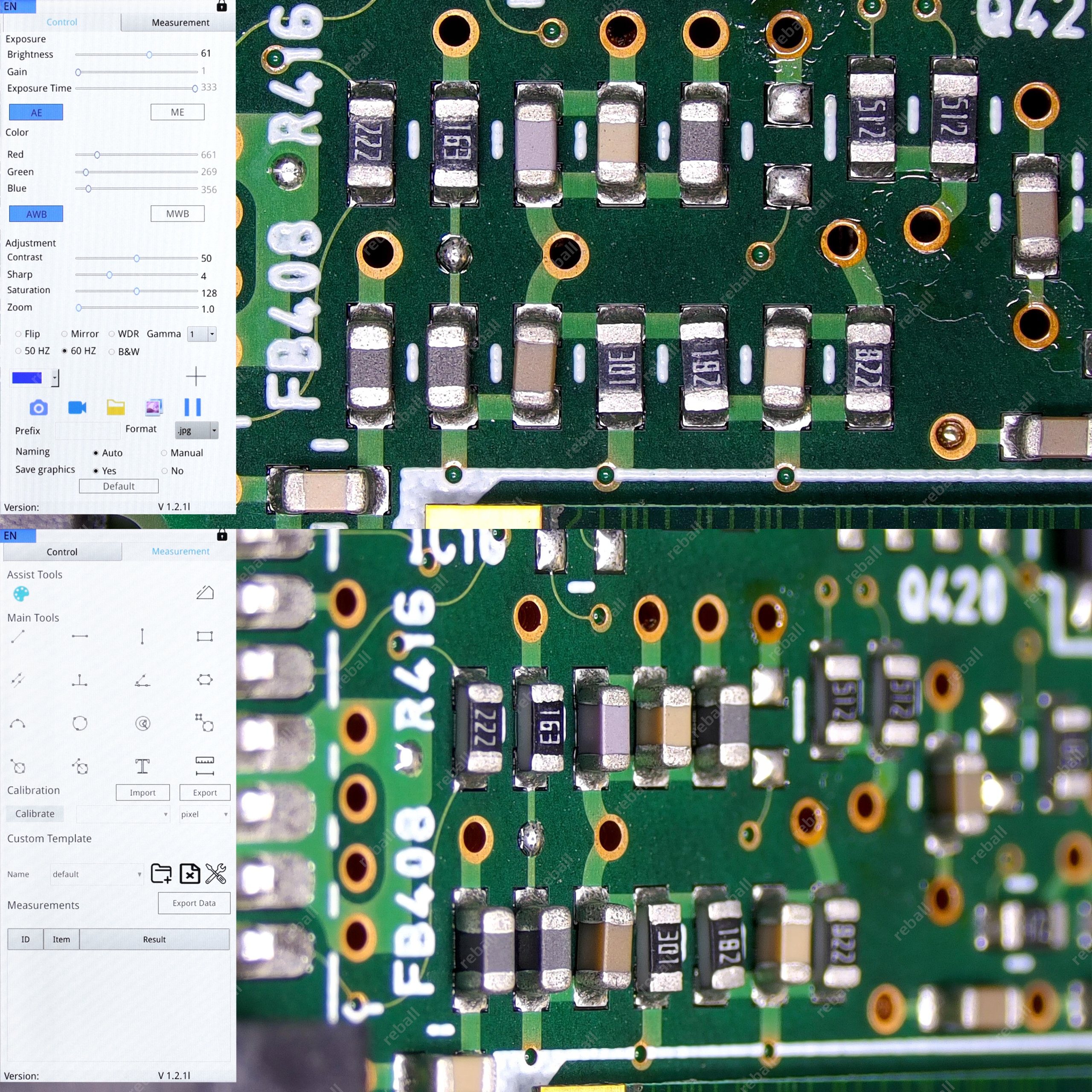 Программное обеспечение камеры имеет возможность регулировать параметры изображения, включить шкалу и размер элементов и расстояние между ними