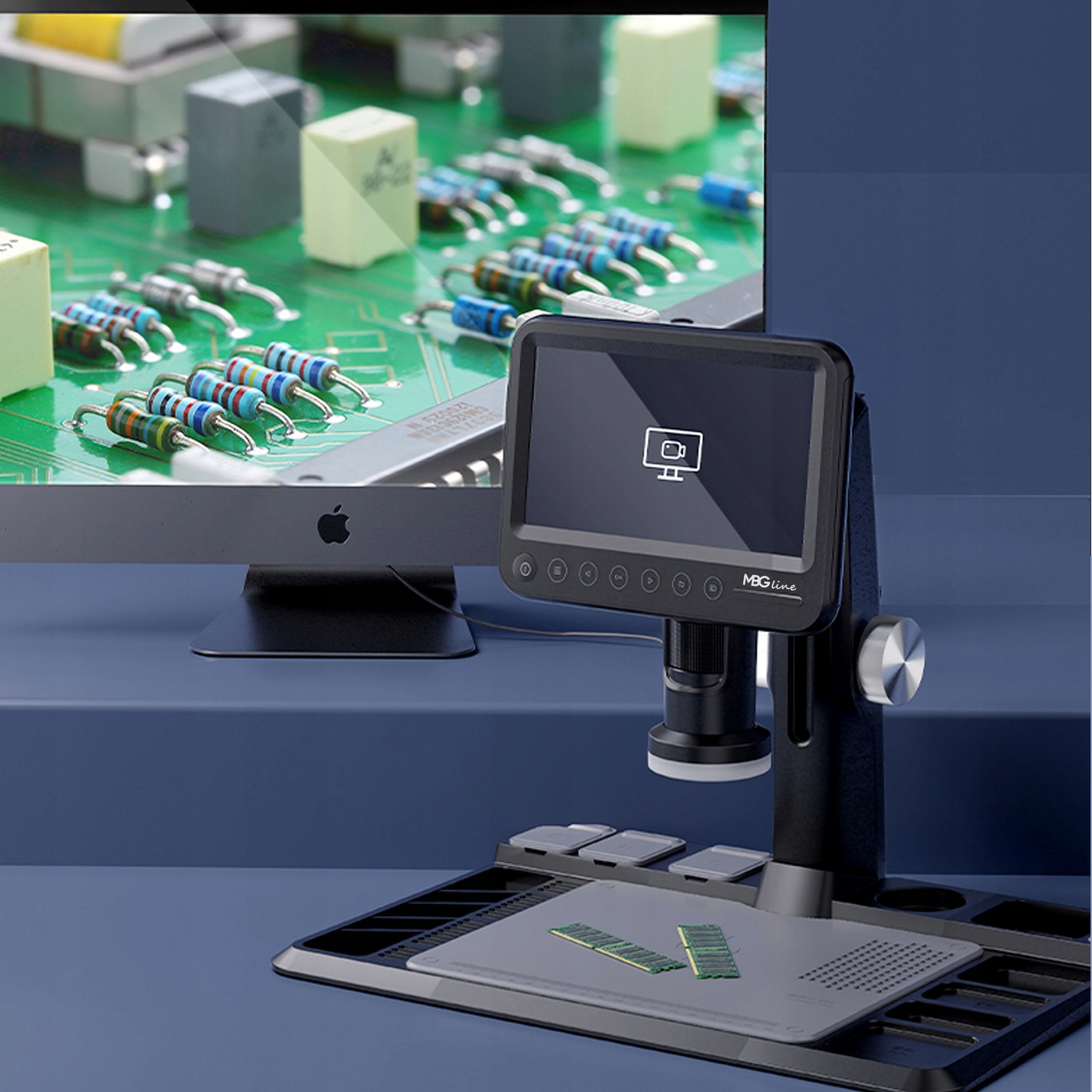Предлагаемый микроскоп благодаря использованию большой 12-мегапиксельной матрицы и 7-дюймового IPS HD LCD-экрана позволяет рассматривать объекты в увеличенном виде вживую.