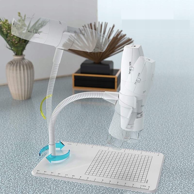 Устройство должно быть установлено на регулируемый стабильный штатив, включенный в набор. Электричество и другие устройства под микроскопом.