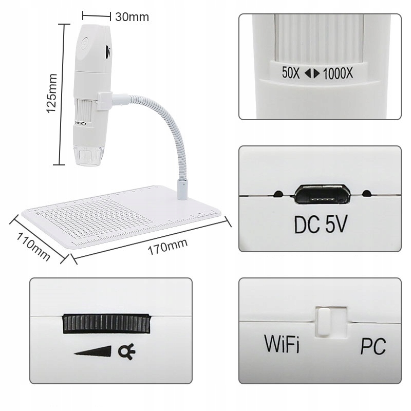 Цифровой микроскоп USB 1080p 2MP App 1000x WiFi