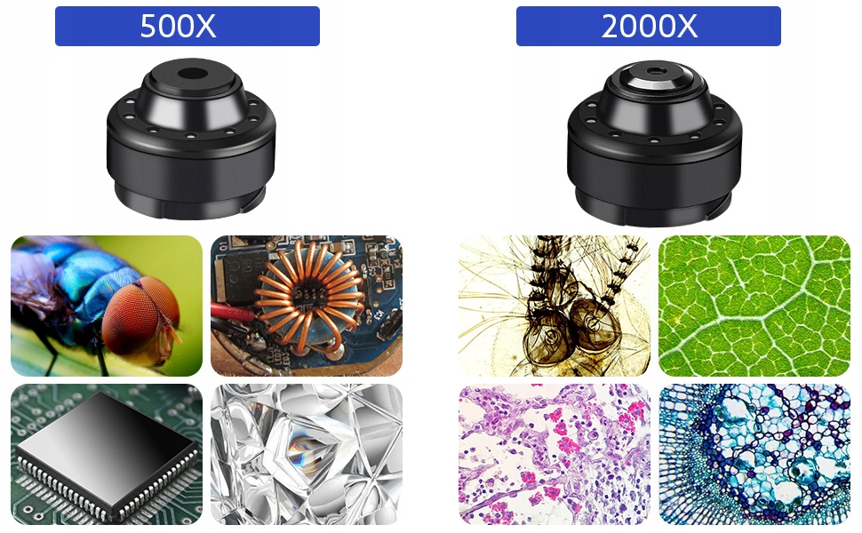 2 СМЕННЫХ ОБЪЕКТИВА В КОМПЛЕКТЕ! Один с 500-кратным увеличением, другой с 2000-кратным!