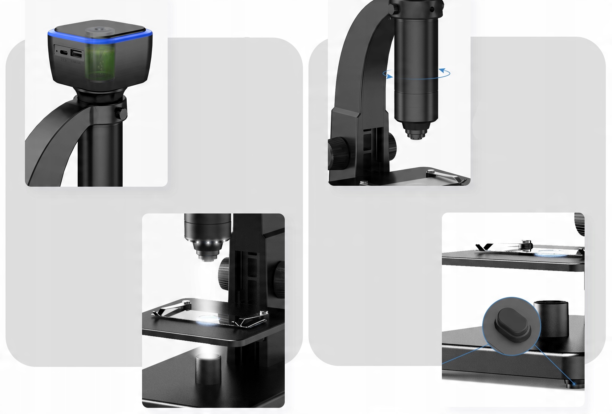 В КОМПЛЕКТ ВХОДИТ ДЕРЖАТЕЛЬ ДЛЯ ТЕЛЕФОНА, КОТОРЫЙ МОЖНО УСТАНОВИТЬ НА ПОДСТАВКУ ДЛЯ МИКРОСКОПА!