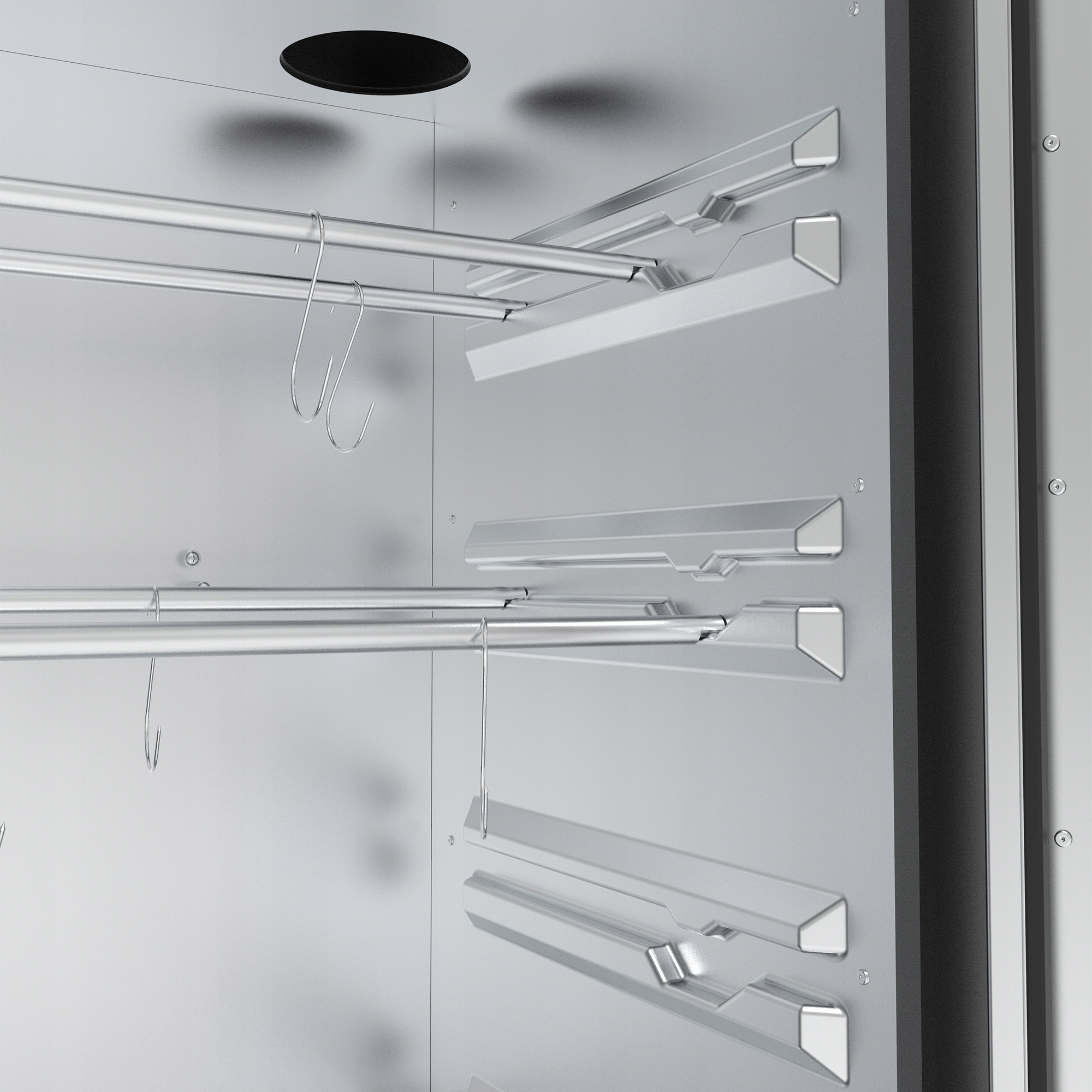Двери с уплотнением, закрытым с пряжкой Обеспечьте легкость закрытия и стеснения. Дополнительным преимуществом является возможность регулировать дверное давление с помощью специального шарнира, помещенного в верхнюю часть дымки. Стекло в дверце камеры позволяет получить удобный предварительный просмотр интерьера дымки и лучшего контроля процесса курения.