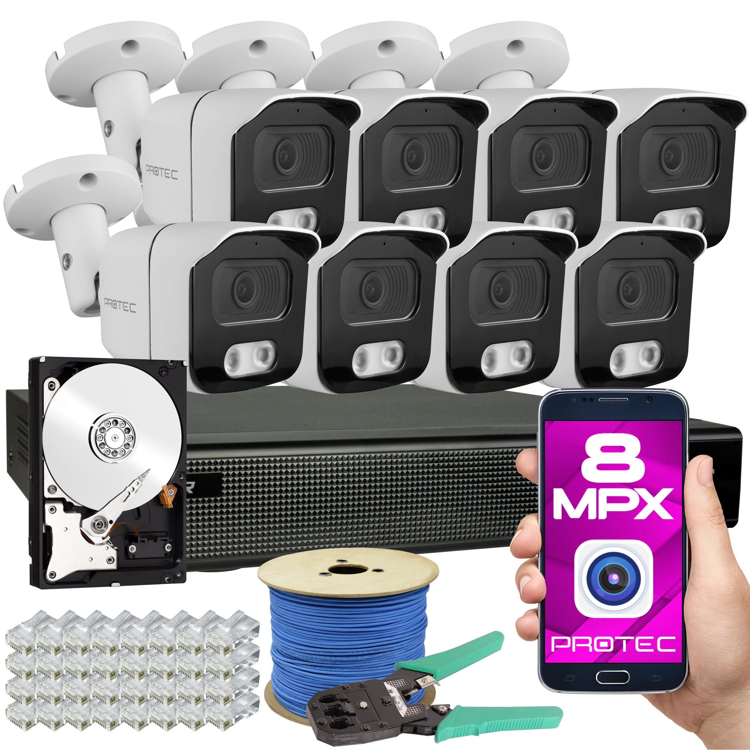 ПОЛНЫЙ НАБОР ИЗ 8 IP-КАМЕР 8 МПХ ВКЛЮЧАЕТ: