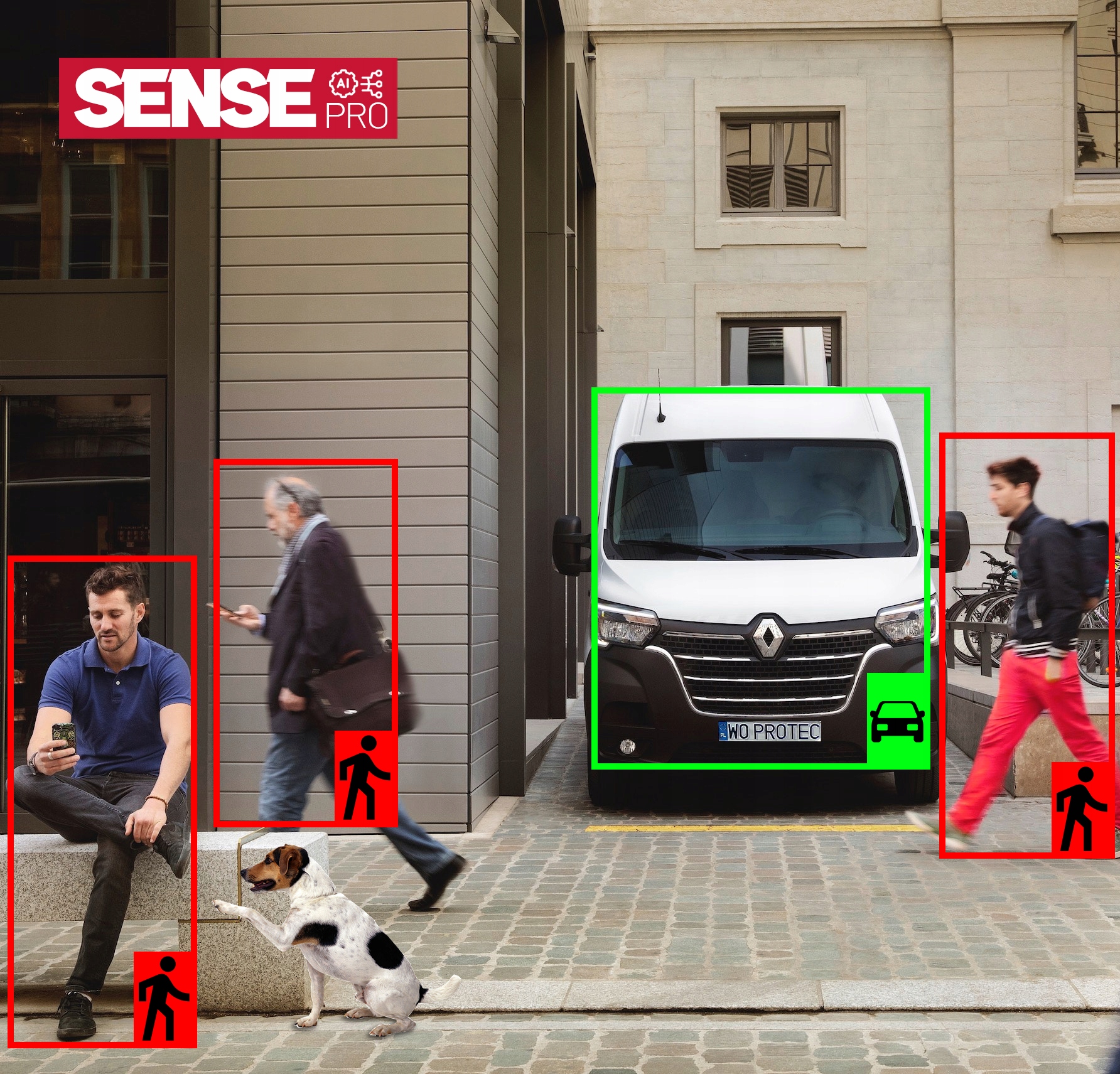 на территории наблюдения. Используя передовые алгоритмы искусственного интеллекта, эта система может точно распознавать движения только людей и транспортных средств. SensePro — это современная технология, которая существенно исключает ложные срабатывания сигнализации, которые часто возникают из-за случайных движений животных или предметов, не имеющих значения с точки зрения безопасности.