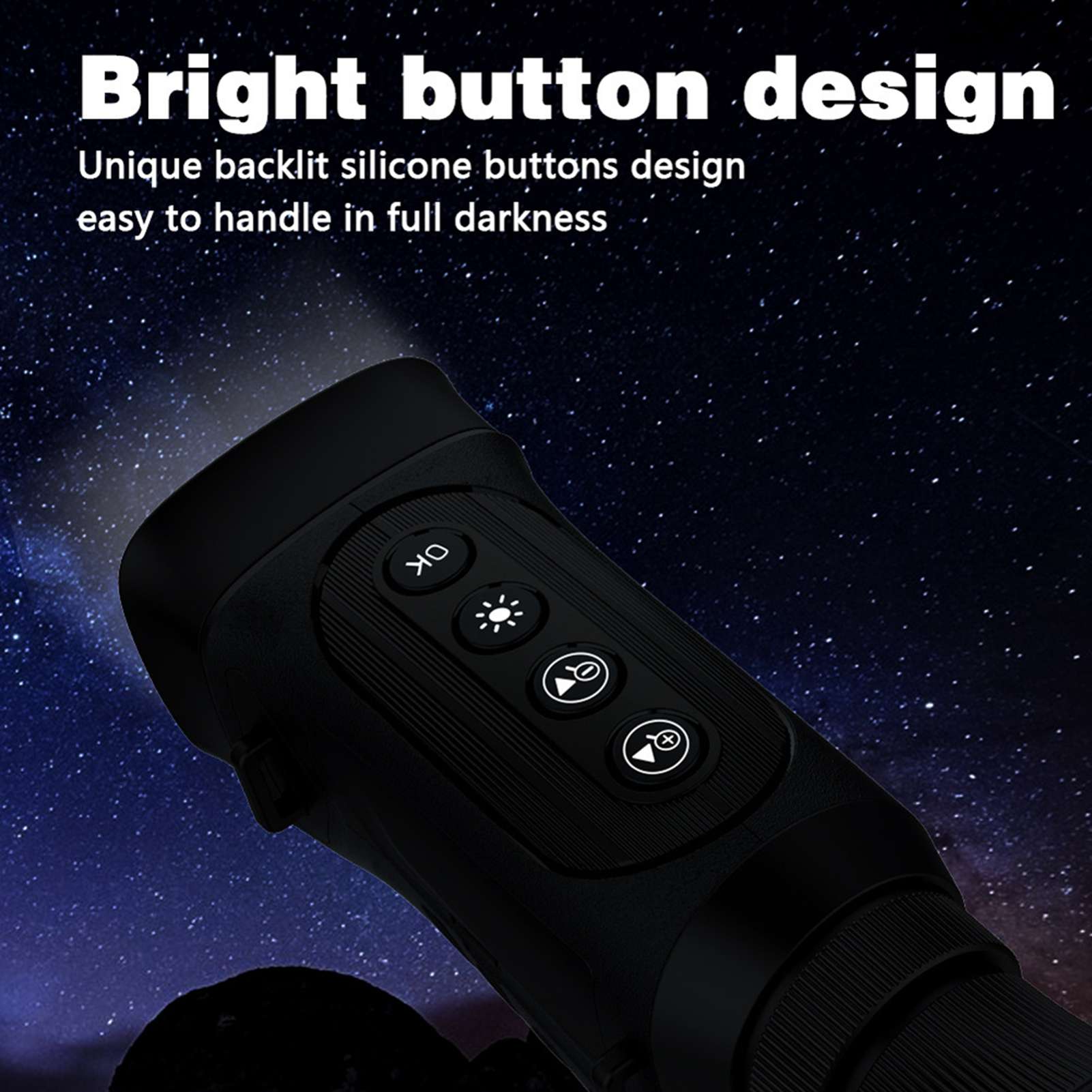 1. Высококачественная визуализация: цифровая монокулярная ночь может снимать 40-мегапиксельные фотографии и записывать фильмы на 2,5 тыс., С 2-дюймовым экраном IPS для яркого и легкого просмотра материала.