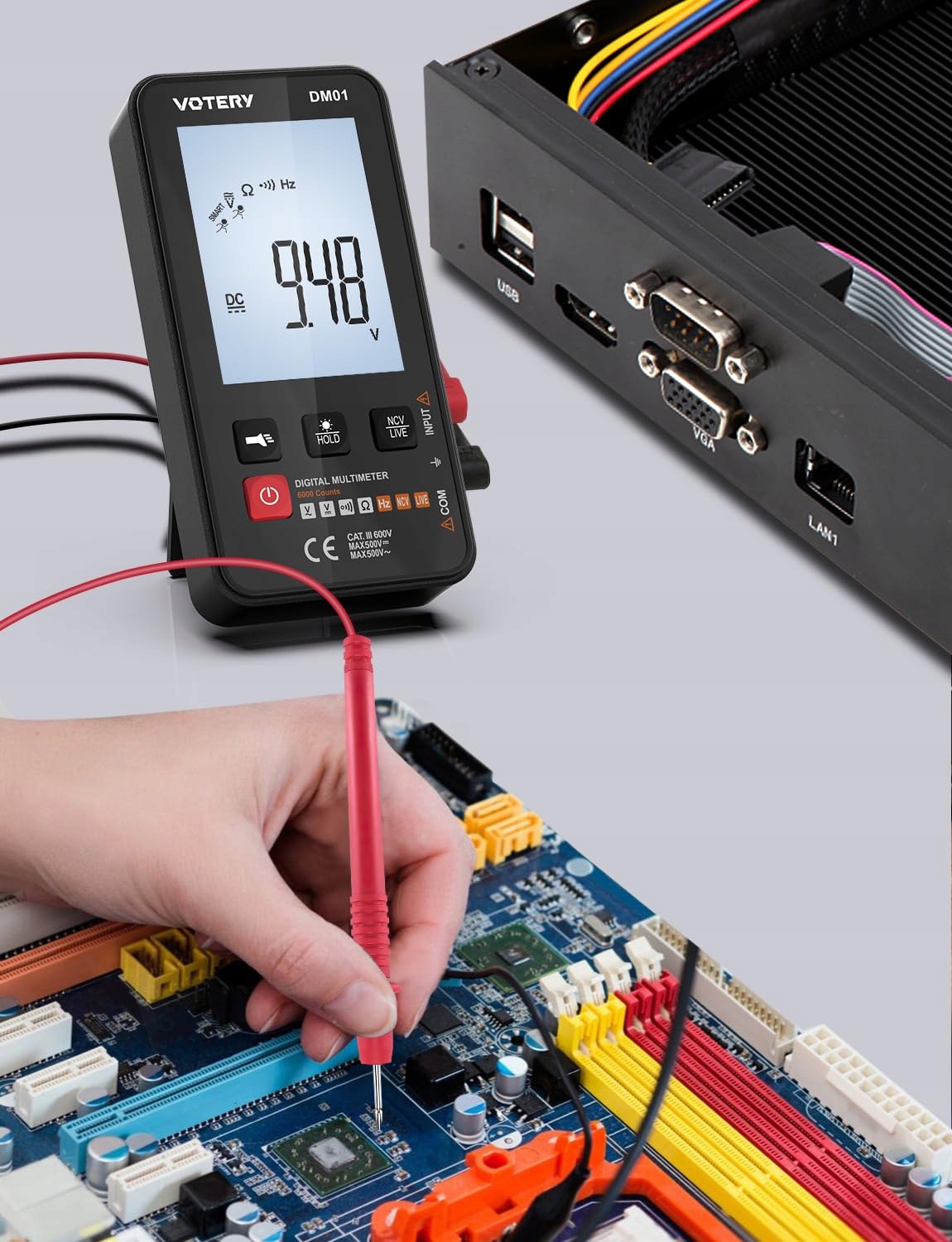 Цифровой мультиметр измерителя тока вольтметра измеряет напряжение Votera DM01
