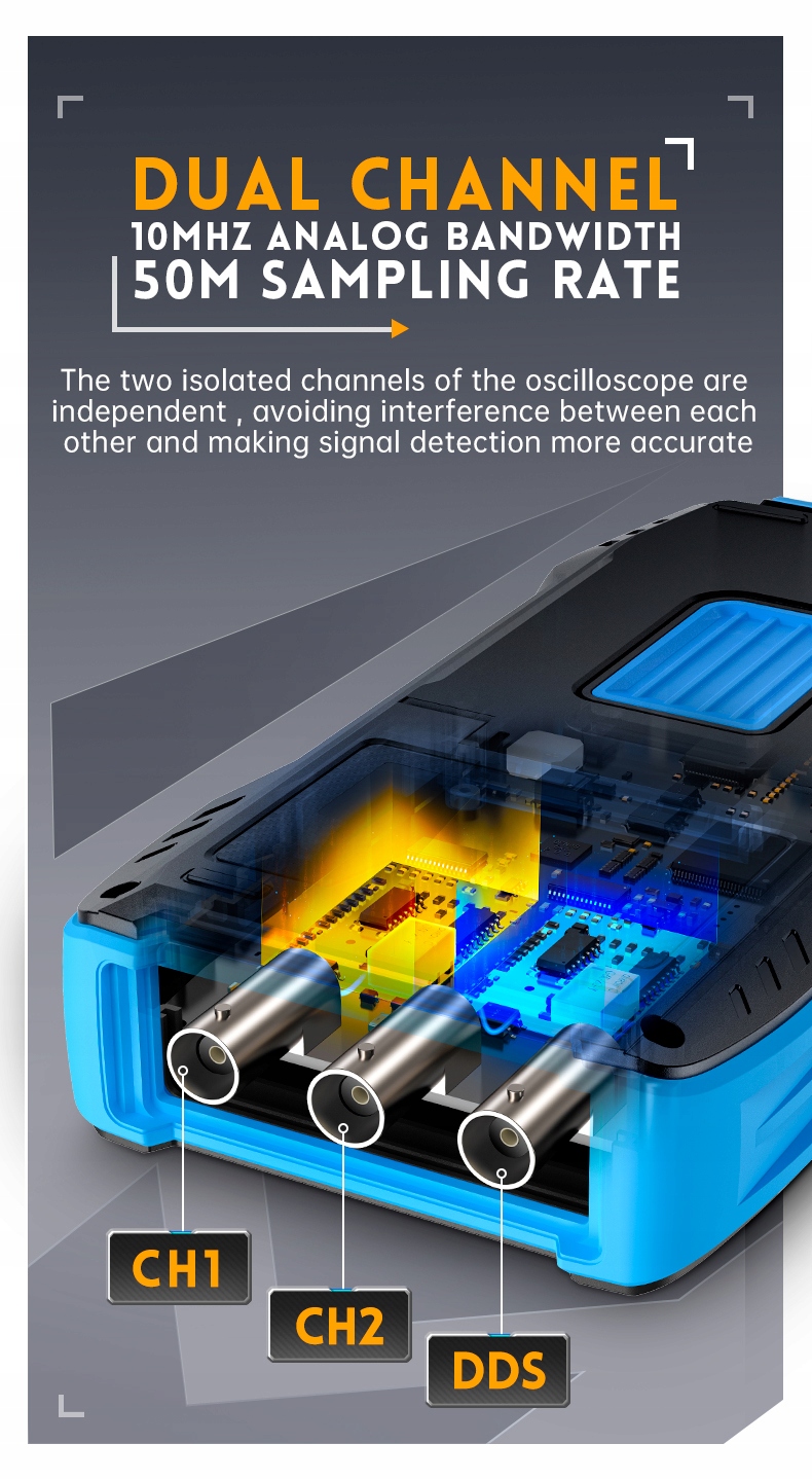 Этот осциллограф используется в широком диапазоне областей, таких как отладка микросхем, техническое обслуживание автомобилей, обслуживание бытовой техники, электронные соревнования, отладка источников питания, преобразователей частоты и т. д.