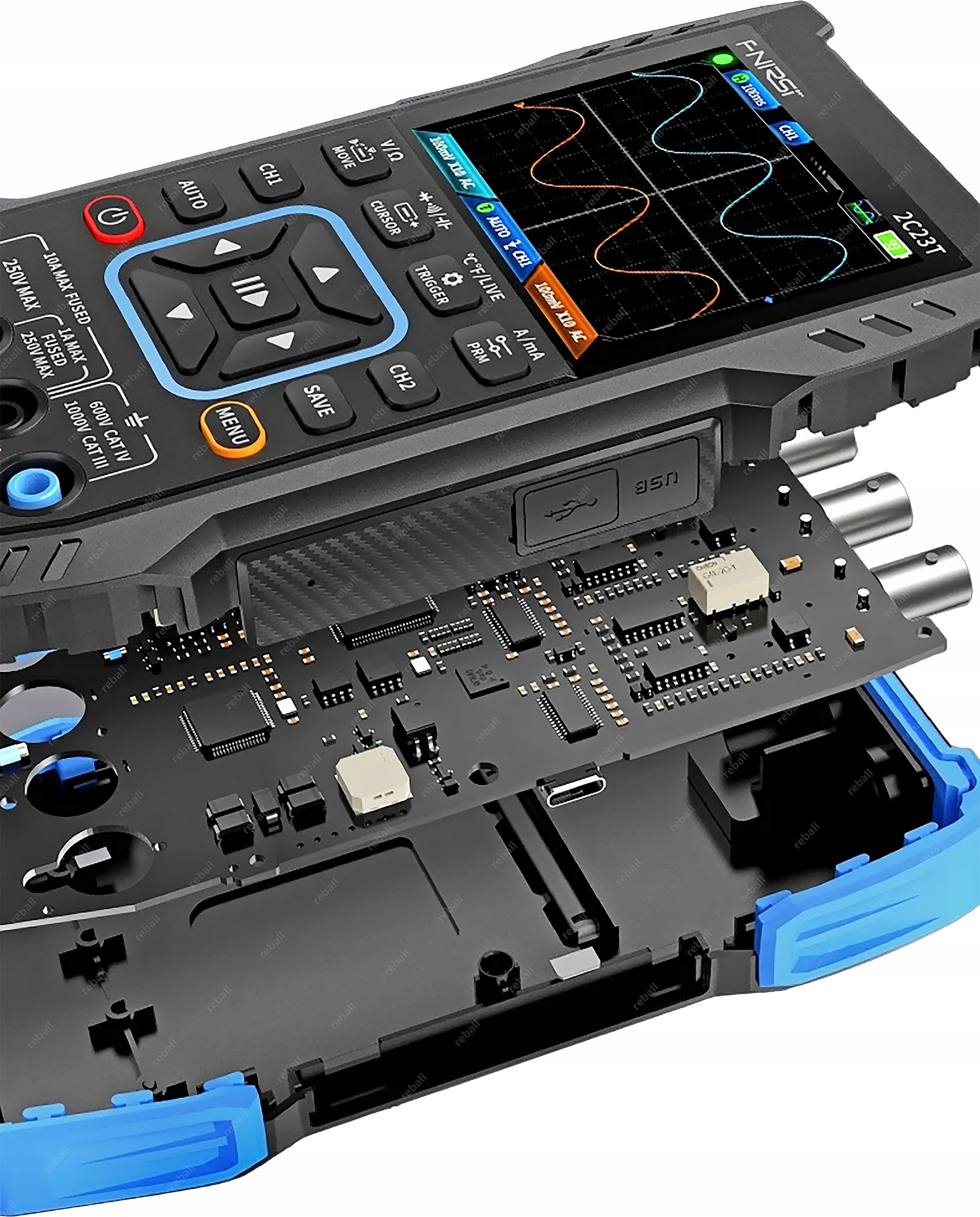 FNIRSI 2C23T — это усовершенствованный осциллограф с полосой пропускания 10 МГц, обладающий мощными функциями, которые делают его идеальным инструментом для измерения и анализа электронных сигналов. Оснащенный микросхемами ARM, FPGA и АЦП, этот осциллограф обеспечивает быстрый сбор сигналов и высокоскоростную обработку данных, обеспечивая удобство использования и широкие возможности.