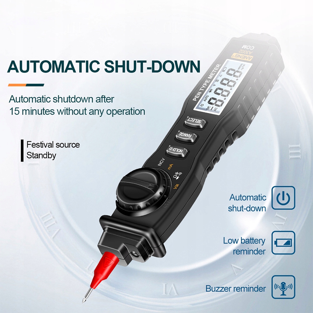 ✅ Многофункциональный, может проверять напряжение переменного и постоянного тока, сопротивление, диод, проверку включения зуммера, емкость, бесконтактное обнаружение напряжения, длительный ток, сообщение о низком заряде батареи.