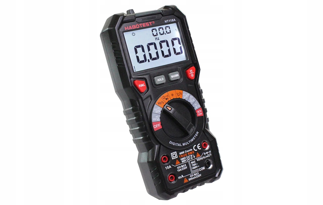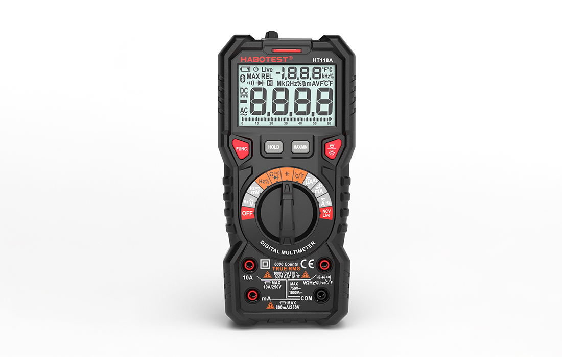 Habotest HT118A также поддерживает другие полезные функции, такие как макс/мин или тестирование диодов. Вы также можете использовать его для проверки истинного значения RMS. Это также позволяет хранить данные. Кроме того, автоматический выбор диапазона обеспечивает оптимальные измерения в любой ситуации.