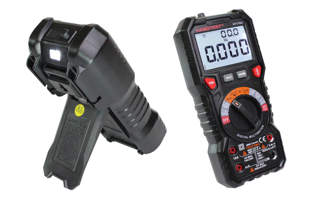 Универсальный измеритель марки Habotest является незаменимым инструментом, который обеспечивает точное измерение таких параметров, как напряжение, непрерывность и температура, среди других. Дисплей с подсветкой упрощает использование. Встроенный фонарик также позволит работать в темных помещениях, а благодаря специальной подставке вы сможете устойчиво разместить устройство на ровной поверхности. Изделие также оснащено датчиками NCV, позволяющими бесконтактно измерять напряжение. Измеритель поддерживает автоматический выбор диапазона.
