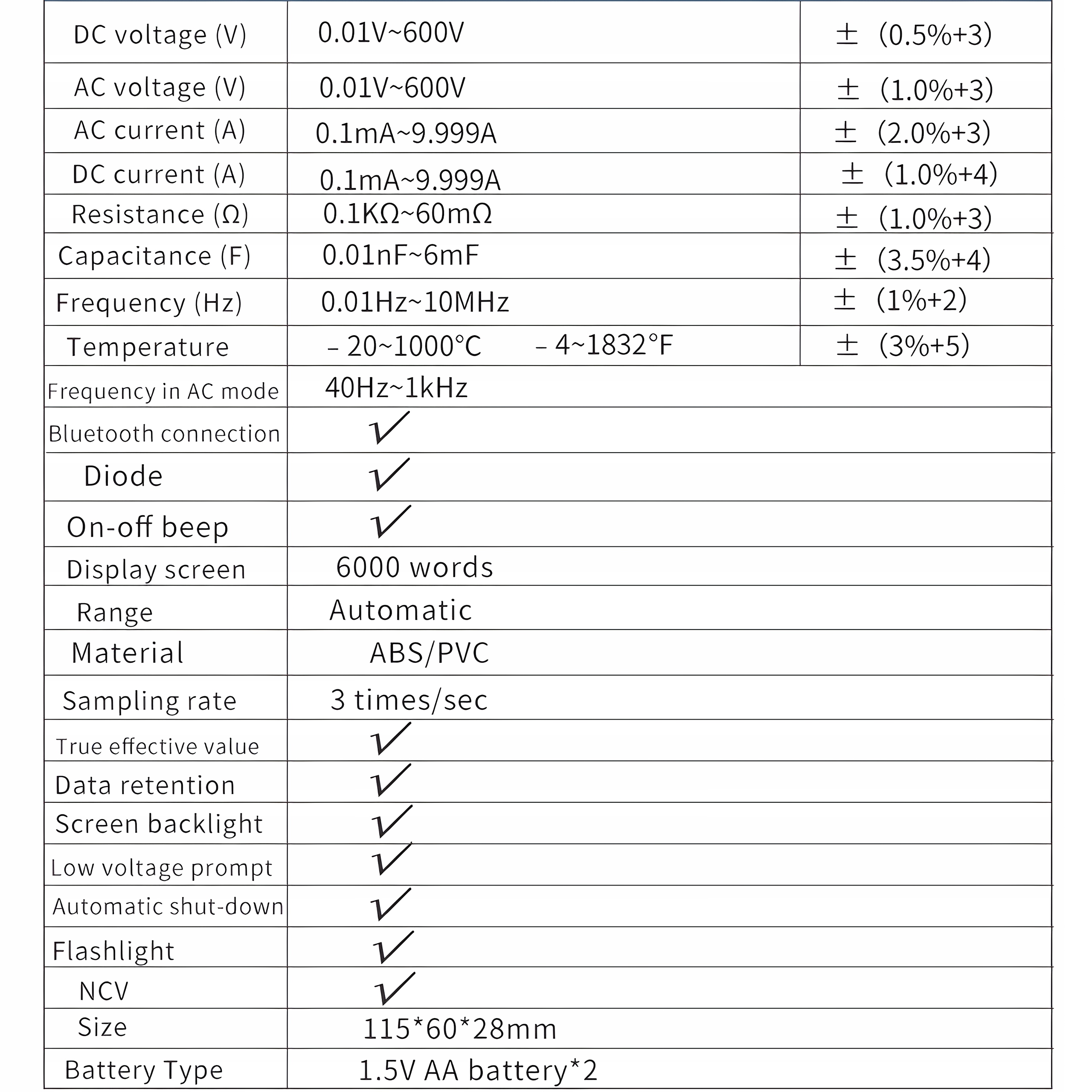 - ✅ Не -Контактное детектирование переменного напряжения AC NCV, например. В ходе гипса,