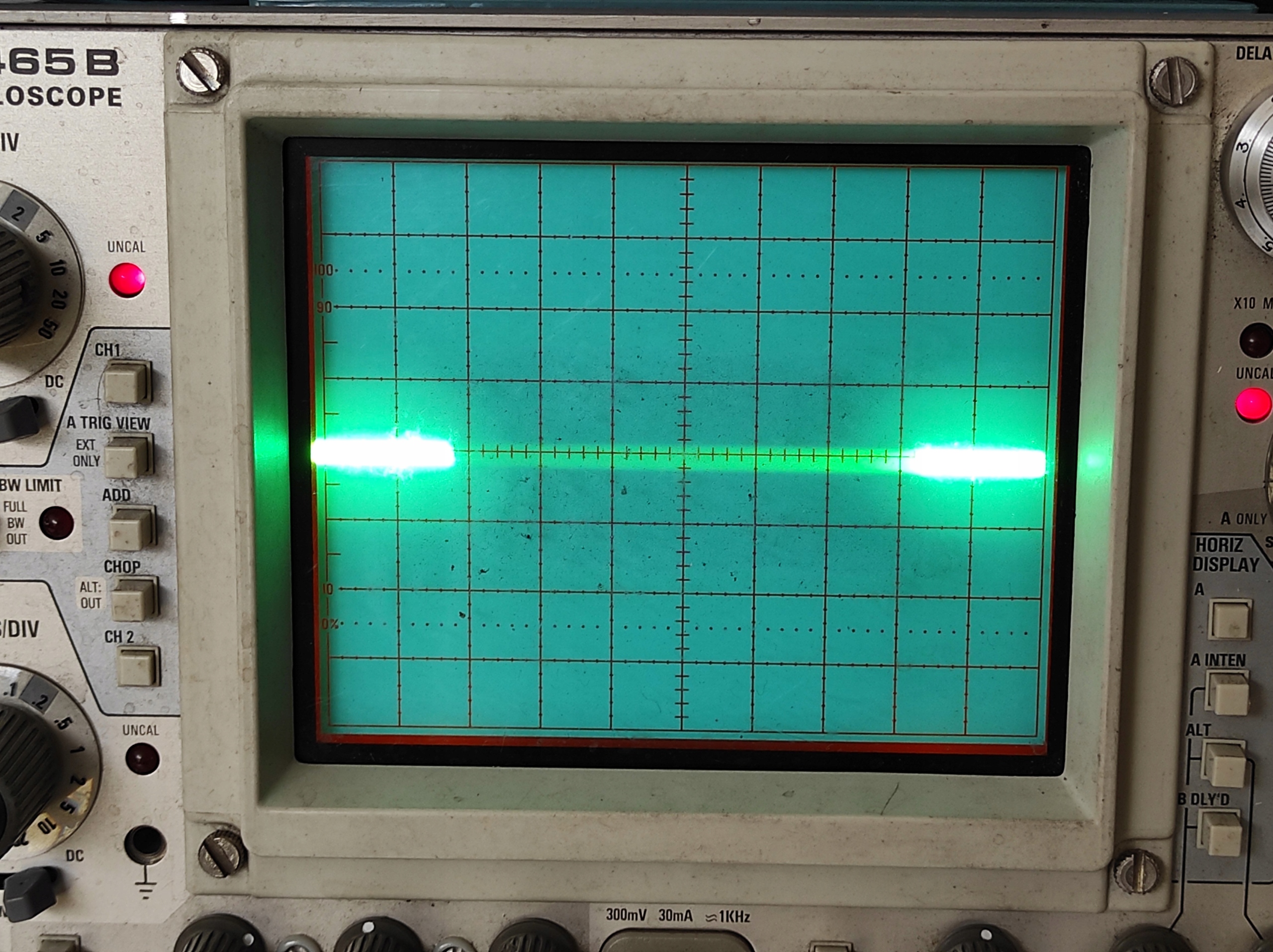 Осциллограф Tektronix 465B — это портативный двухканальный четырехполосный прибор, обеспечивающий трассировку для двух входных каналов, просмотр сигнала запуска с внешнего входа запуска и функцию суммирования. Калиброванные коэффициенты отклонения от 5 милливольт/дел до 5 вольт/дел обеспечиваются вертикальной системой постоянного тока до 100 МГц для входных каналов и функцией суммирования. Схемы запуска развертки способны обеспечить стабильное срабатывание во всей полосе пропускания системы вертикального отклонения. Система горизонтального отклонения обеспечивает калиброванную скорость развертки от 0,5 секунды/дел до 0,02 микросекунды/дел, а также функции задержки развертки для точных измерений относительного времени. Увеличение в 10 раз увеличивает калиброванную скорость развертки до 2 наносекунд/дел. Устройство работает в широком диапазоне сетевых напряжений и частот с максимальной потребляемой мощностью около 100 Вт.