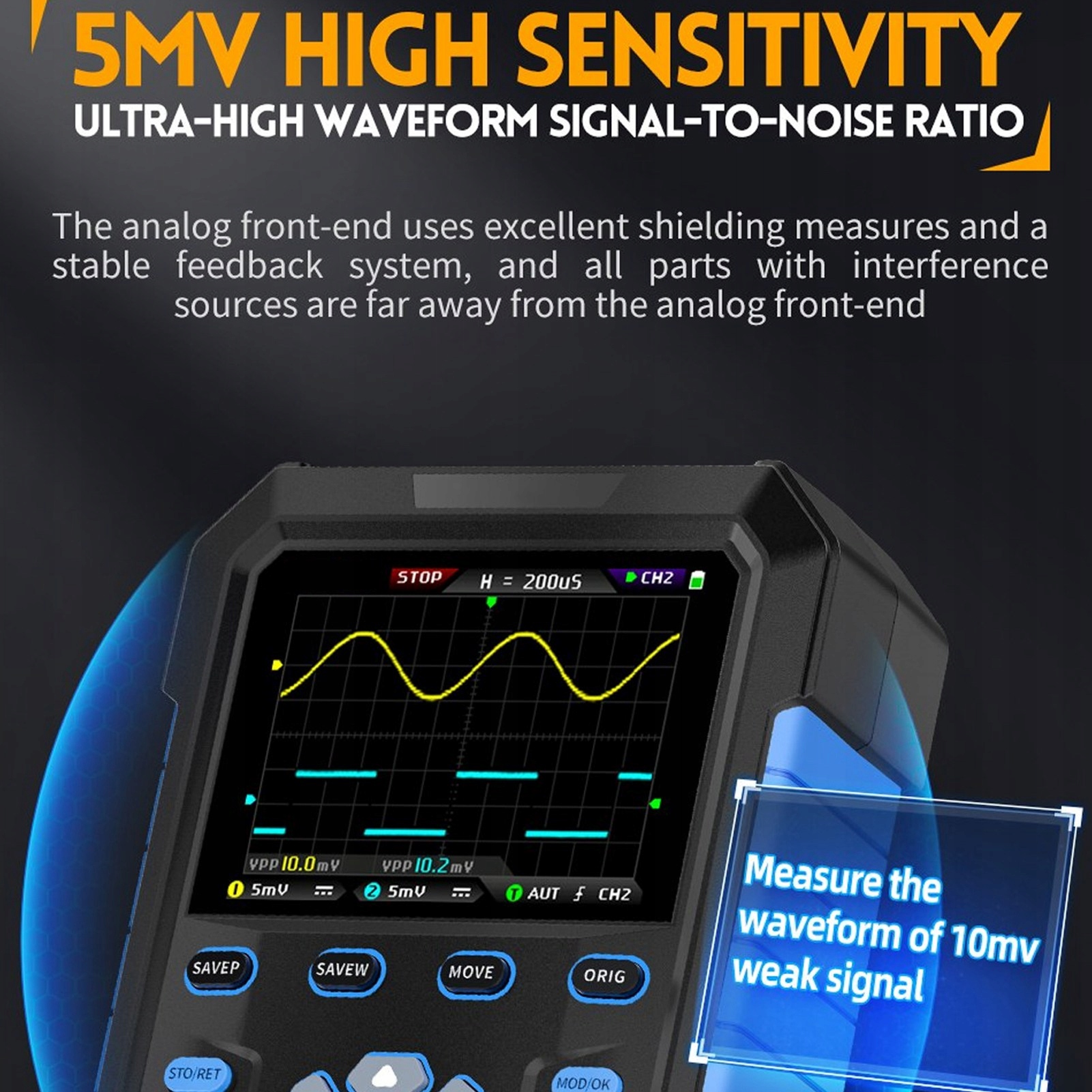 Цифровой осциллограф, 2-канальный генератор сигналов с полосой пропускания 180 МГц GO