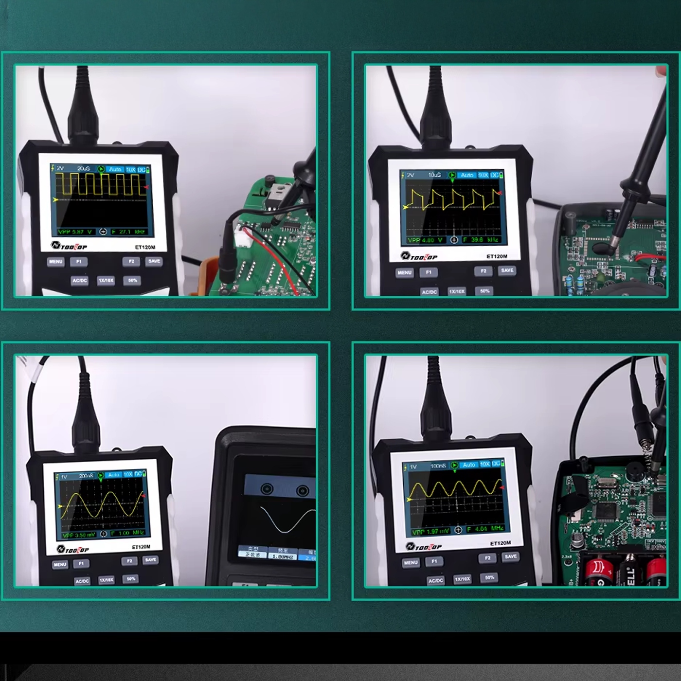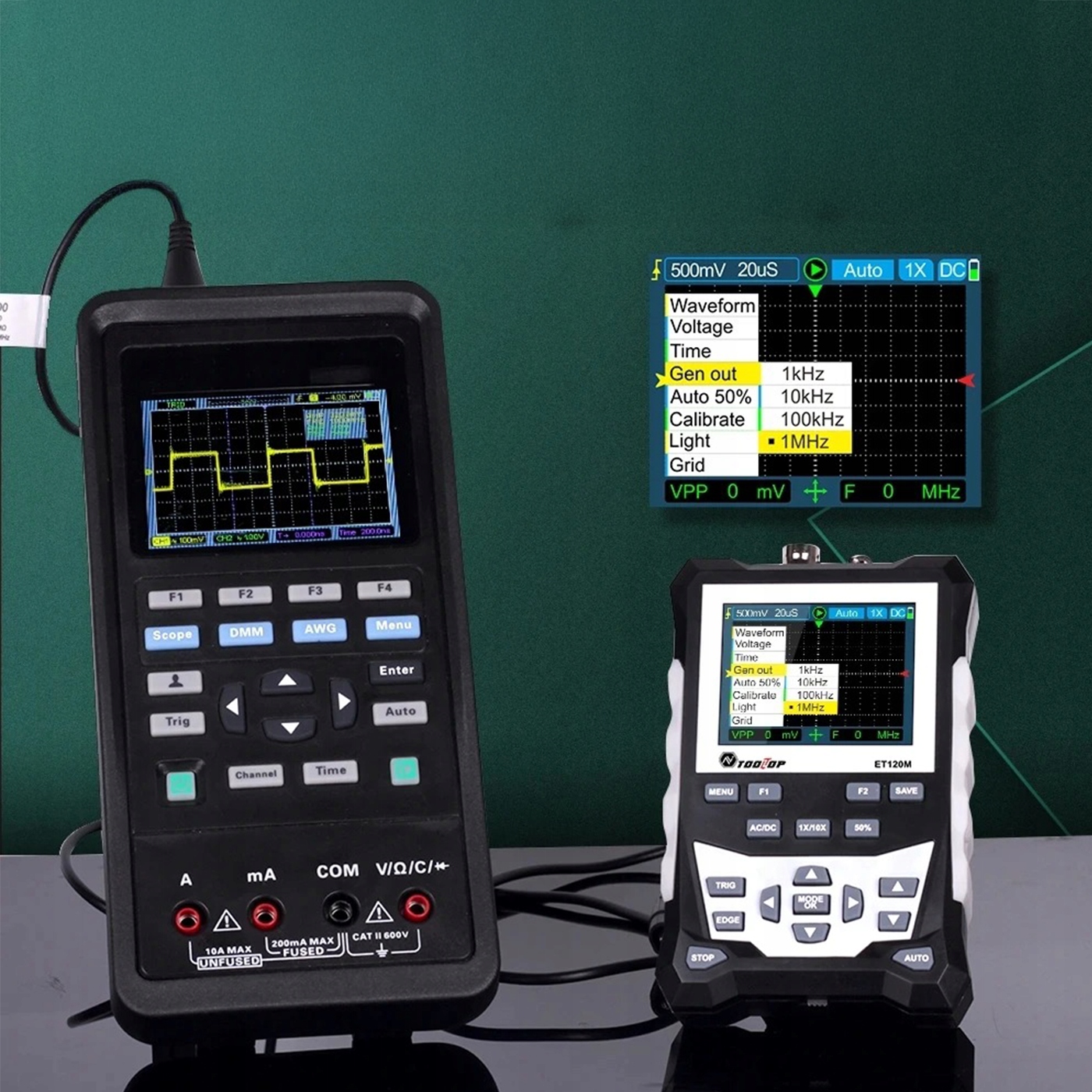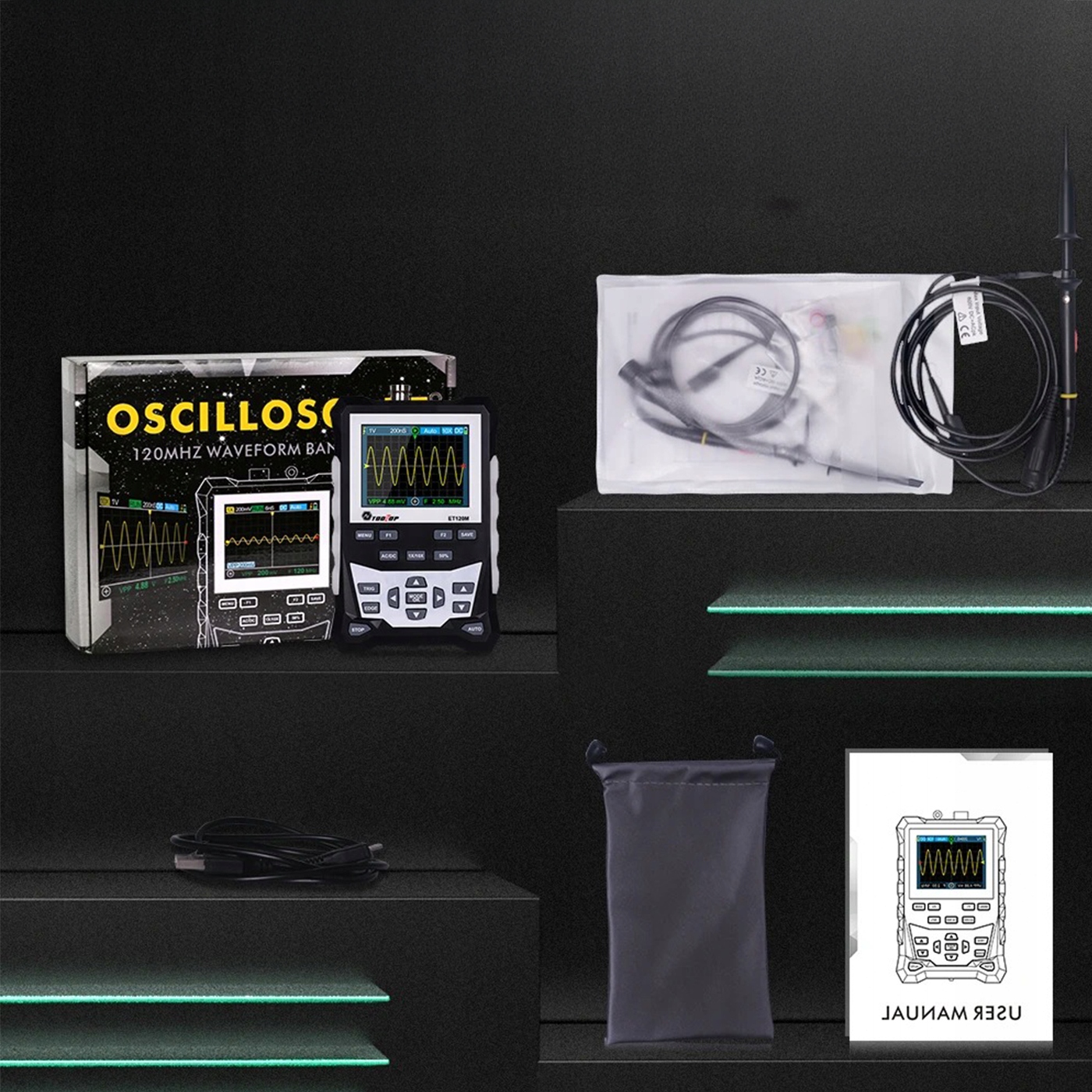 Вы ищете точный портативный осциллограф, который будет работать как в мастерской, так и в полевых условиях? Этотпрофессиональный цифровой осциллограф — идеальное решение! Благодаря полосе пропускания 120 МГц и частоте дискретизации 500 MS/s он обеспечивает точные измерения, а встроенная литиевая батарея обеспечивает до 6 часов непрерывной работы. Компактный дизайн, цветной дисплей и расширенные функции делают его инструментом, который облегчит любую задачу по ремонту и диагностике!