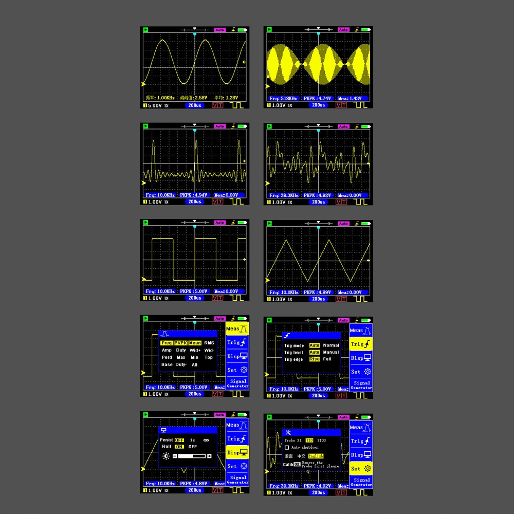 Простая в использовании: автоматическая регулировка, остановка, меню и один триггер можно сделать с одним щелчком. Масштабирование и движение формы волны можно сделать, просто нажав кнопку режима, чтобы переключаться между 4 кнопками направления, что очень удобно.
