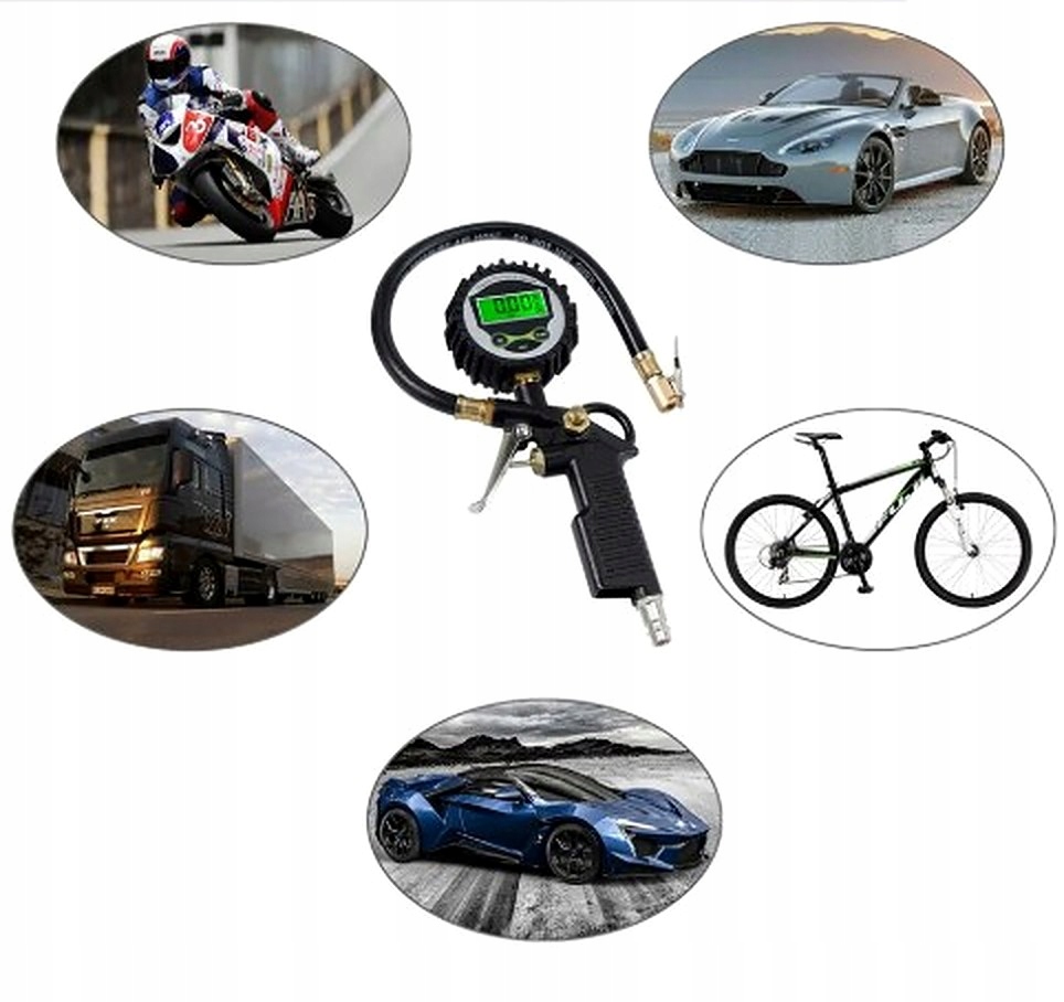Идеально подходит для накачивания автомобильных, велосипедных и мотоциклетных шин, а также для контроля и регулирования давления в режиме реального времени.