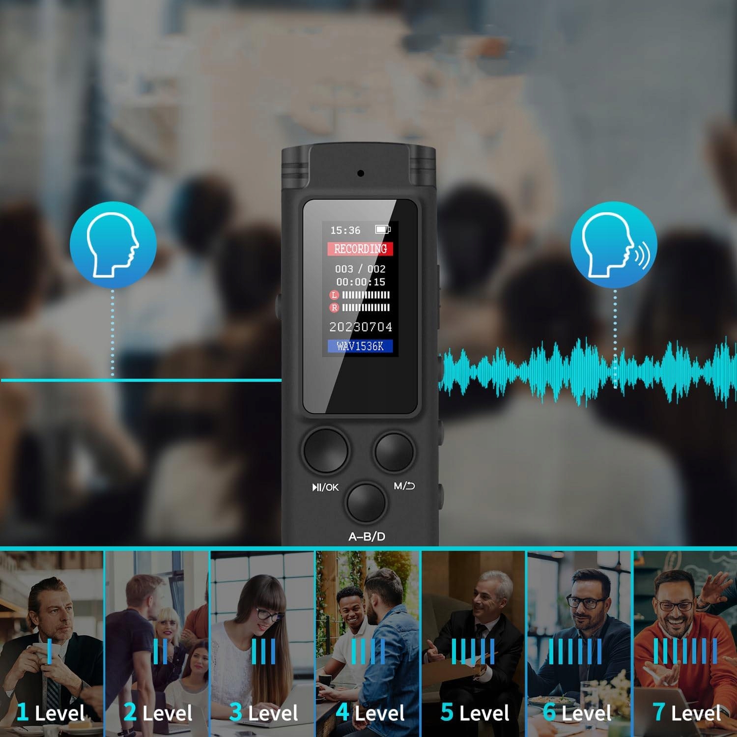 В этом диктофоне используется модернизированный микрофон с шумоподавлением и профессиональный записывающий чип. Он может захватывать высококачественный звук со скоростью 1536 Кбит/с, как будто динамик стоит рядом с вами. Также вы можете включить функцию монитора, чтобы прослушивать запись с диктофона в режиме реального времени. Это лучший выбор для людей, которые записывают и хранят лекции, встречи, занятия, интервью и т. д.