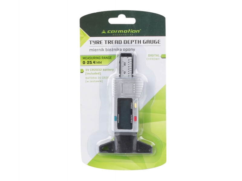Цифровой измеритель высоты/глубины протектора шин с диапазоном измерения до 25,4 мм.
