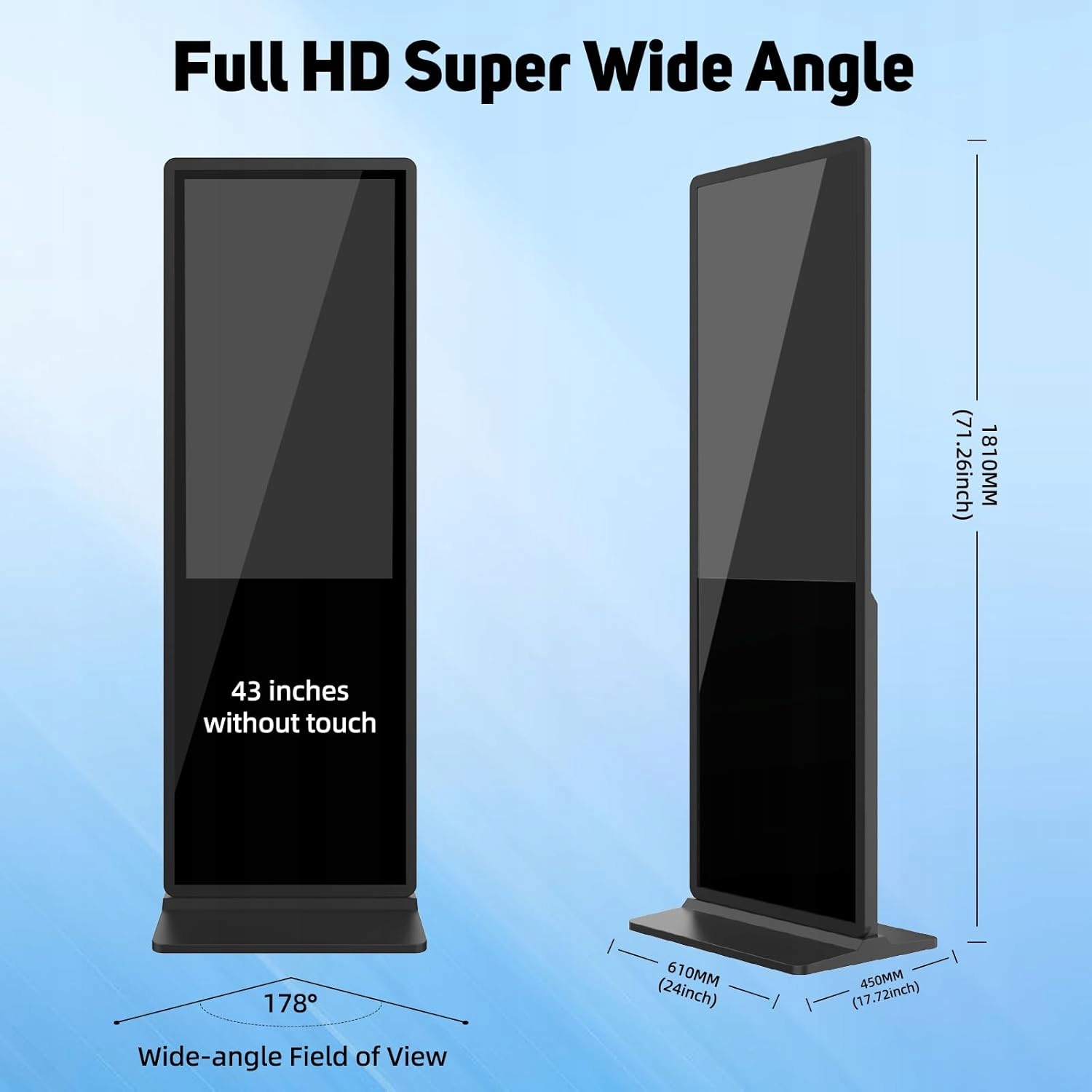 Digital Display yckjnb 43" Это современное и эффективное решение для представления рекламного и информационного содержания. Благодаря высоким разрешению, функции разделенного экрана и расширенных вариантов связи, это незаменимый инструмент в визуальном маркетинге.
