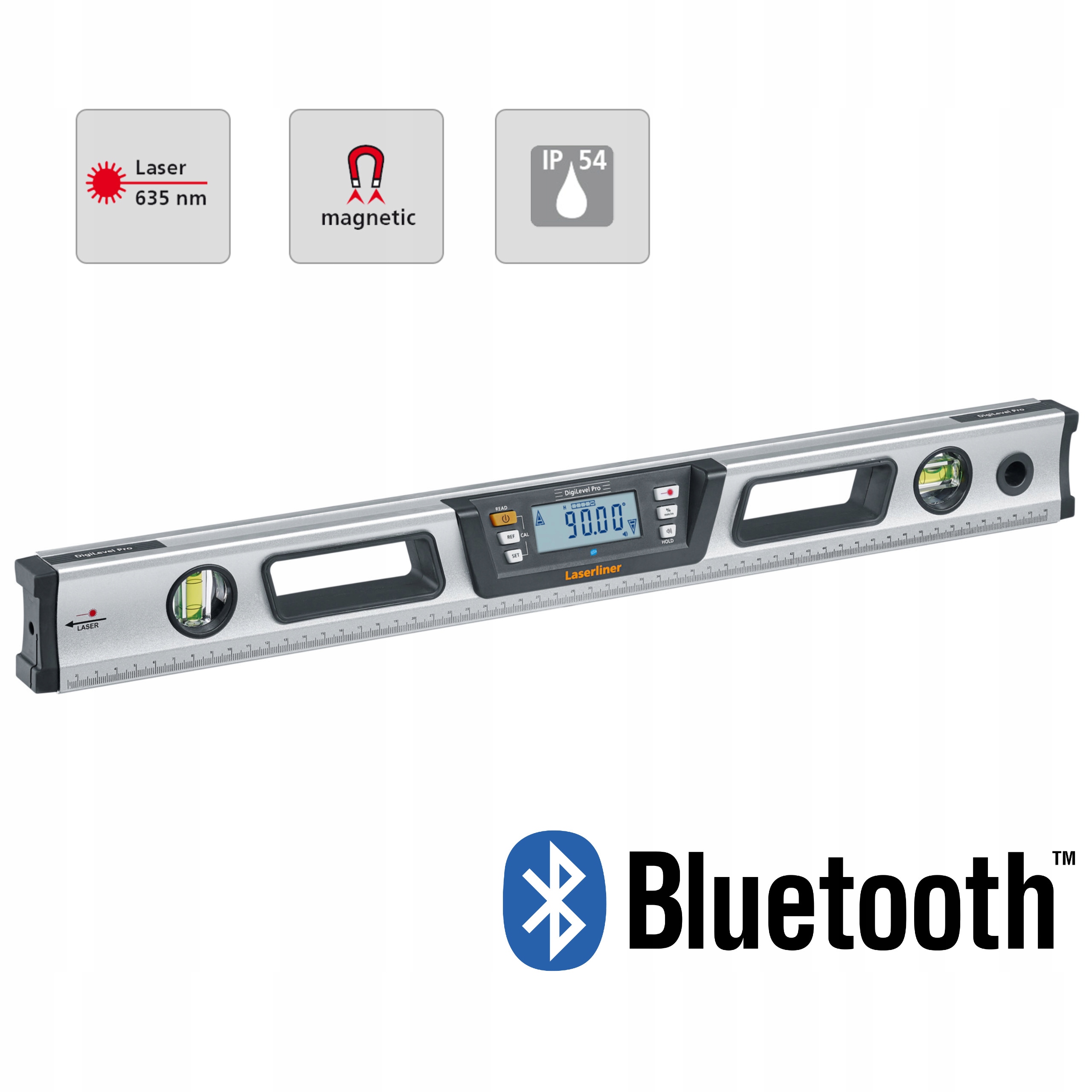 - 3 единицы измерения на выбор: °, % и мм/м.