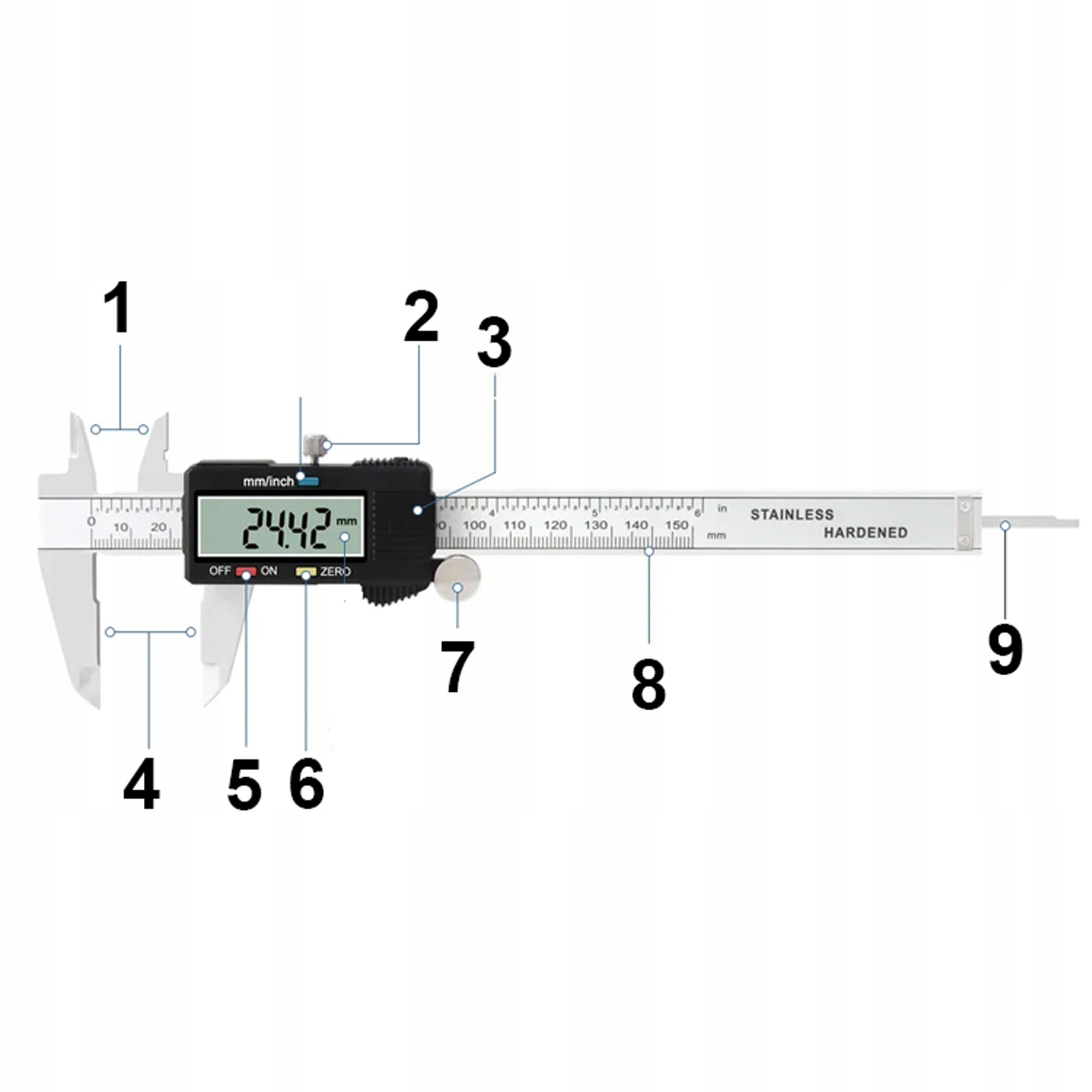 Электронный цифровой штангенциркуль. Устройство, необходимое каждому любителю DIY. Идеально подходит как для дома, так и для гаража. Он изготовлен из прочного и прочного пластика, который не искажает измерения. Штангенциркуль длиной 150 мм найдет множество применений как для небольших, так и для профессиональных измерений. Облегчите себе жизнь уже сегодня, купив качественный электронный штангенциркуль!