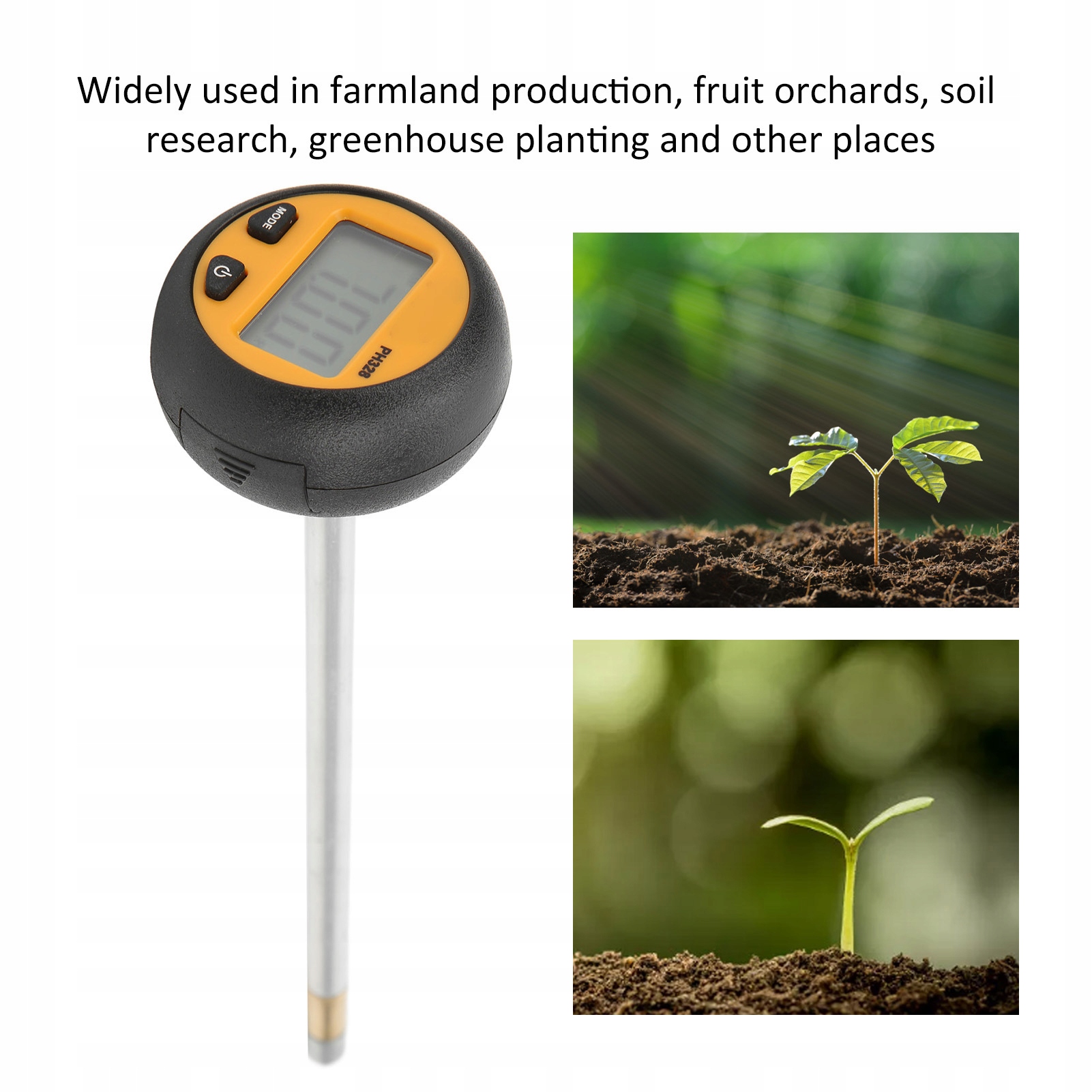 1. Соответствующие почвы: цифровой тестер PH можно использовать для обнаружения рассады, щелочной почвы, кислой почвы, почвы от кокоса, матричной почвы и так далее. Применение: PH -метры почвы широко используются в производстве сельскохозяйственных земель, фруктовых садов, тестов почвы, посадки в теплицах и других местах, обеспечивая больше удобства. Universal: Тестер может измерять не только кислотность и щелочность почвы, но и температуру и влажность почвы. Диапазон измерения составляет 2,0 PH-8,5 PH, а результаты измерения очень хорошо. Легко в использовании: нажмите кнопку режима, чтобы пережить отображение влаги, температуры и рН почвы. HI отображается, когда измеренное значение pH больше 8,5, а LO отображается, когда оно меньше 2,0. Советы измерения: очистите поверхность зонда перед каждой измерением. Если протестированная почва слишком сухая, ее следует правильно распылять водой и подождать час до измерения